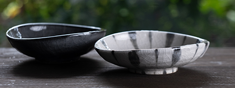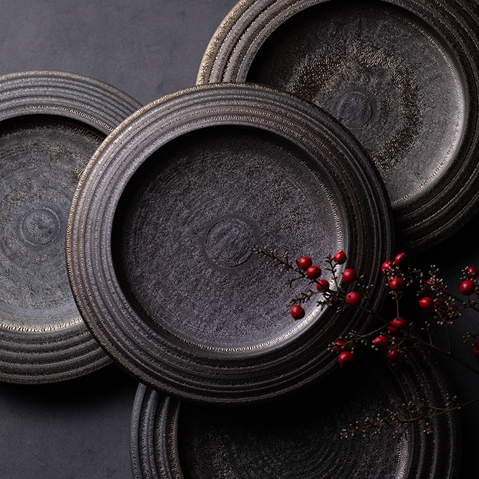 陶芸家:瀬津純司さんの黒のコントラストを独自の技法で表現した美しい皿。