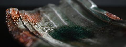 伊賀焼の豪快さを食卓へ。新学さんの約35cmの伊賀灰釉鎬変形長方皿。