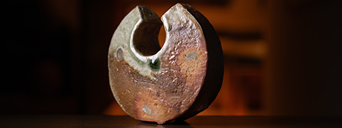 伊賀焼の美さを空間へ。新学さんの伊賀まどか花器。