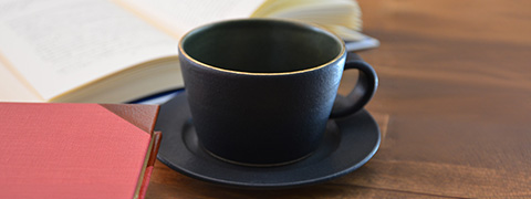 まるで漆のような赤と黒の色彩で、空間をシックに染める森野知子さんのモダンなコーヒーカップがゆったりとした時間で心に癒しをもたらす。