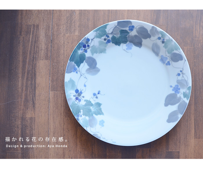 描かれた染付作品。和を基調にしながらもモダンなテイストで新