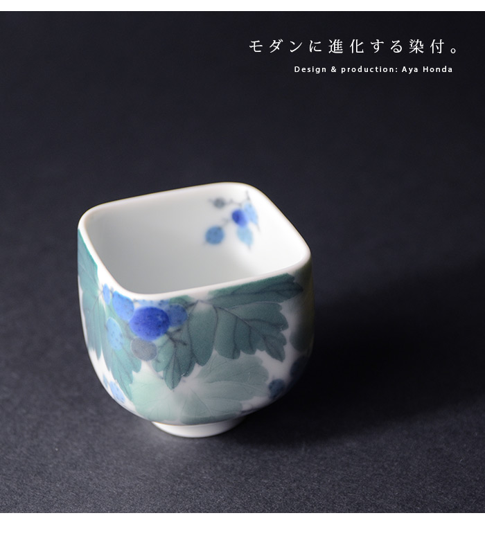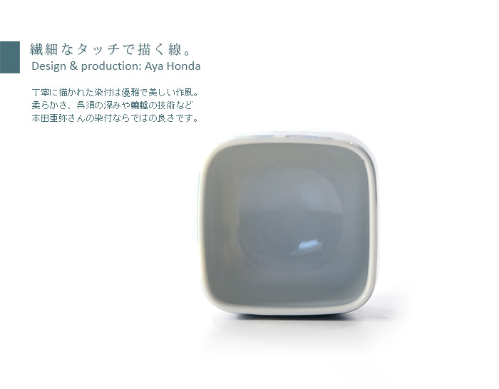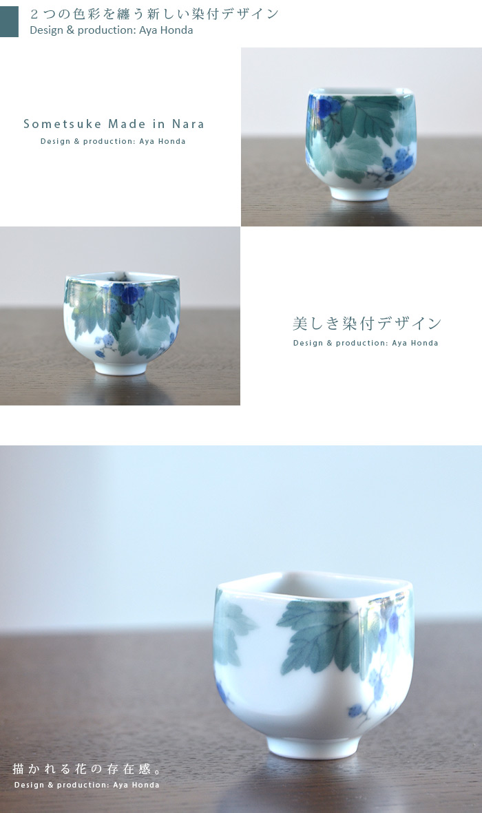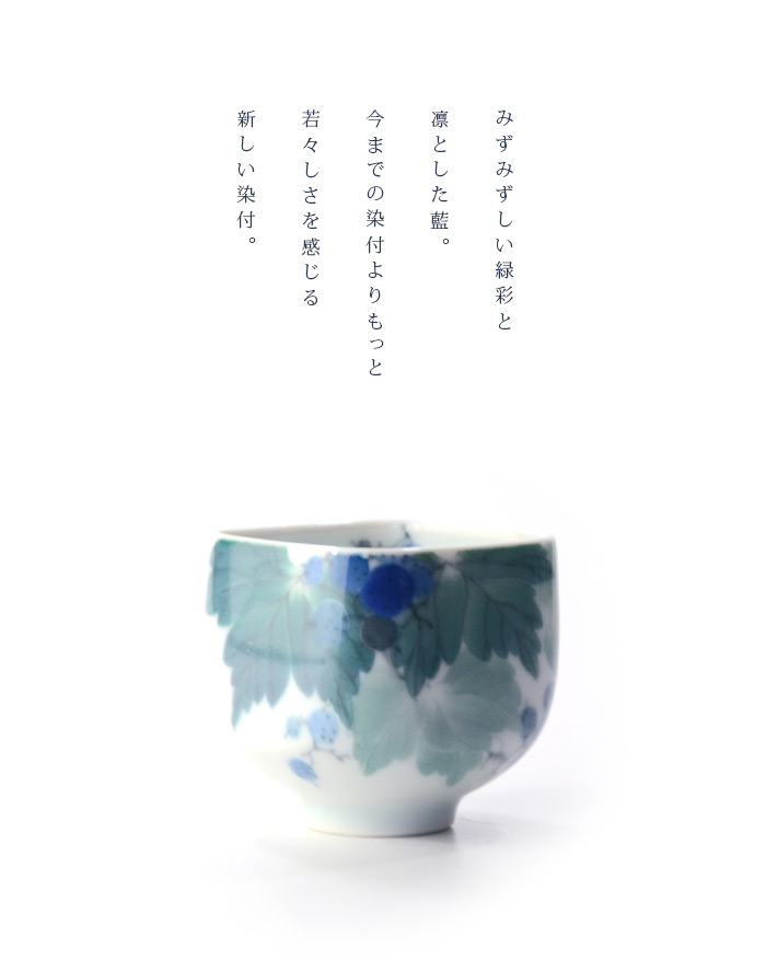描かれた染付作品。和を基調にしながらもモダンなテイストで新