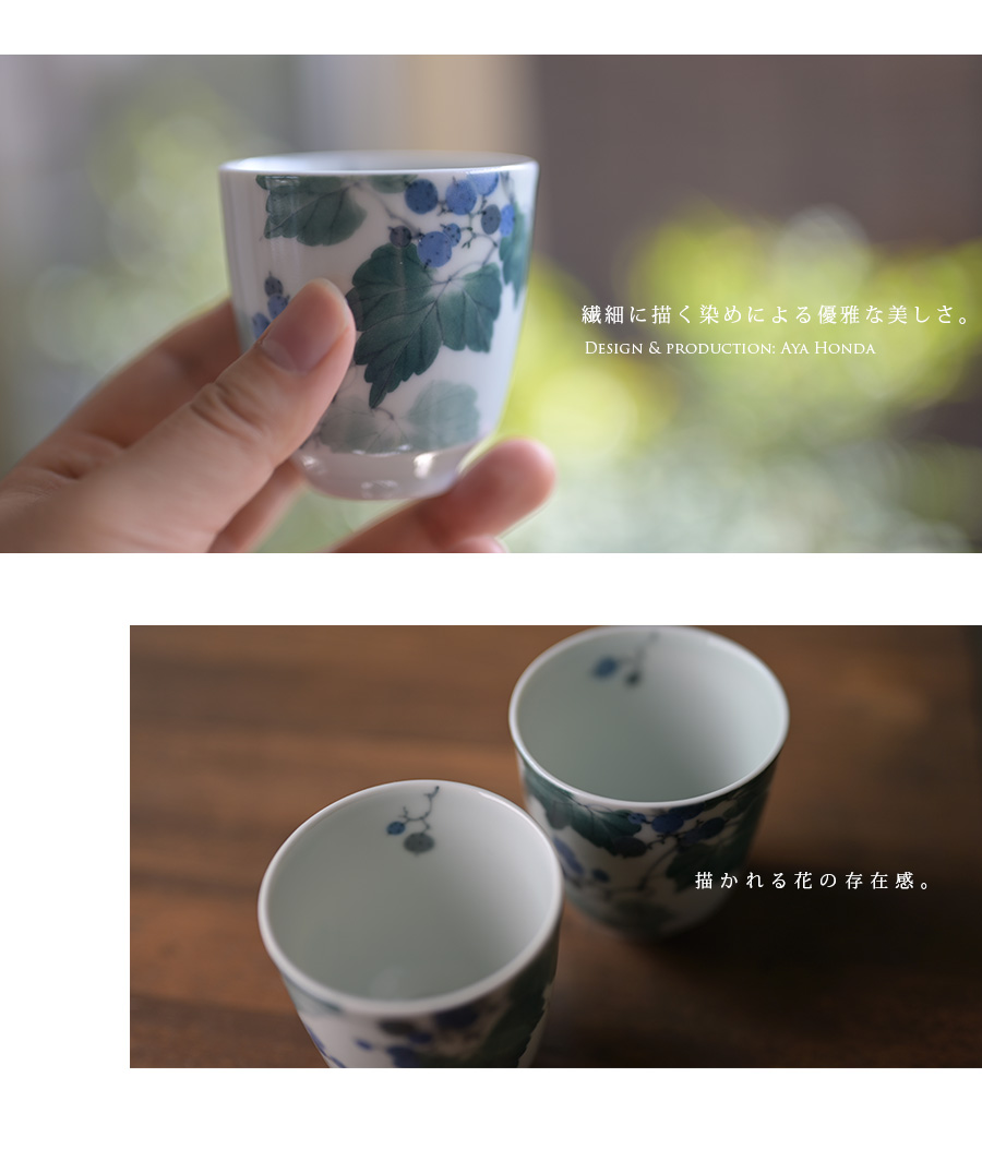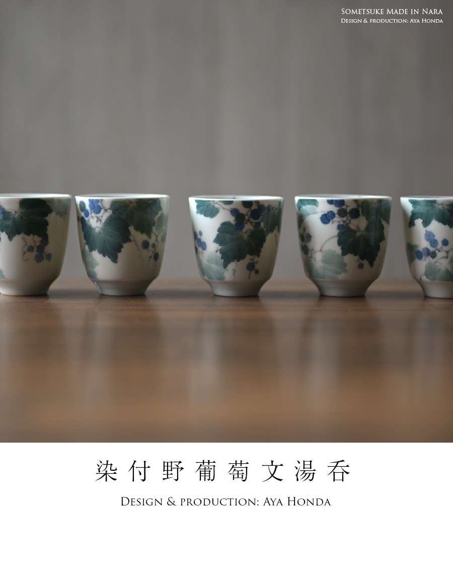 奈良県・天理で作陶する本多亜弥さんの染付湯呑。
