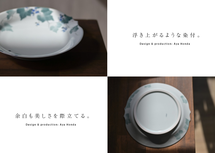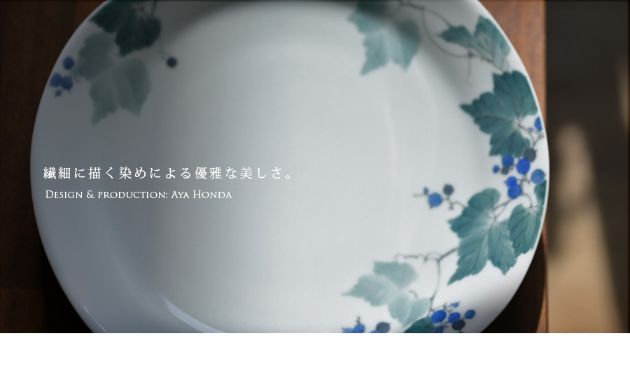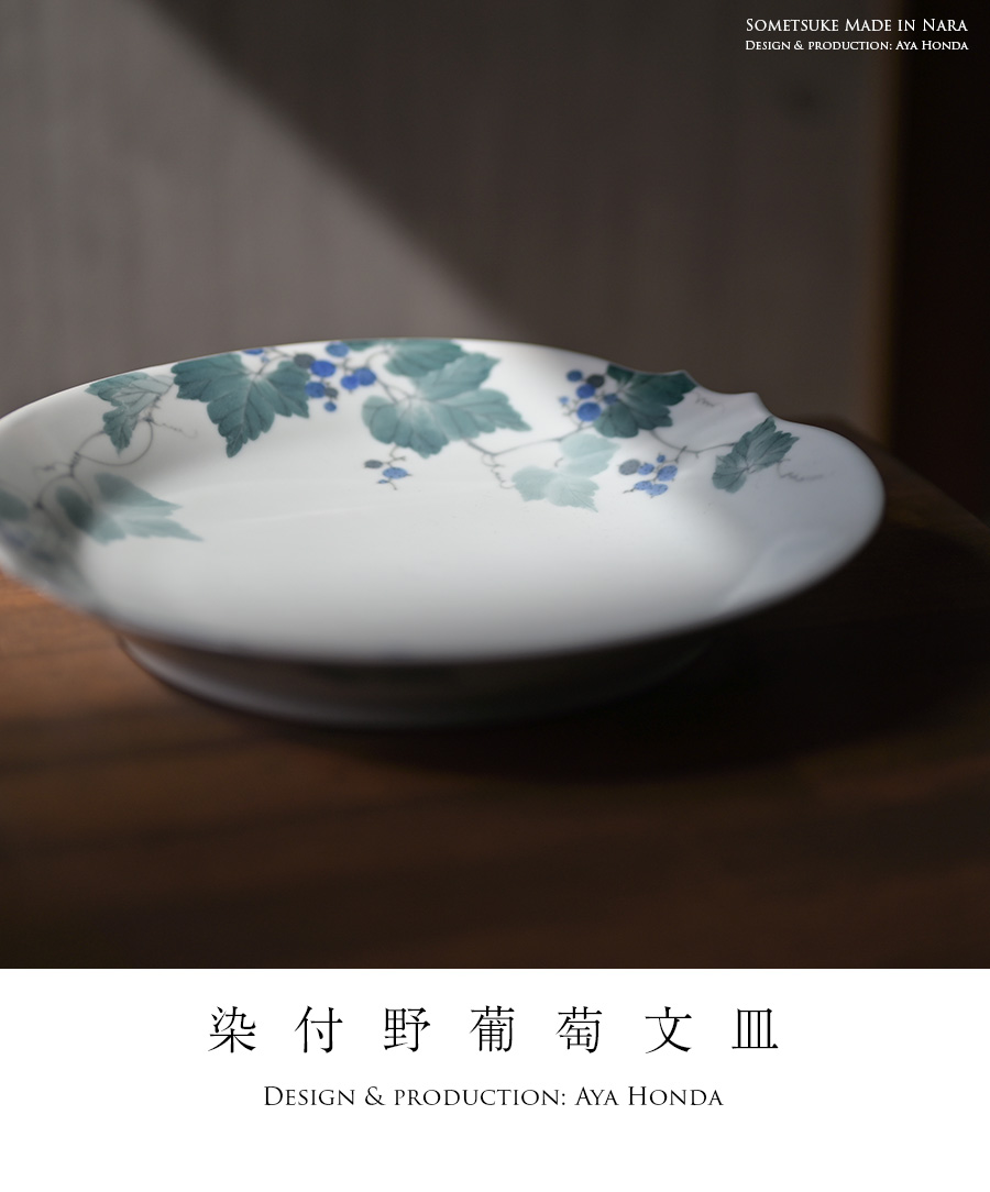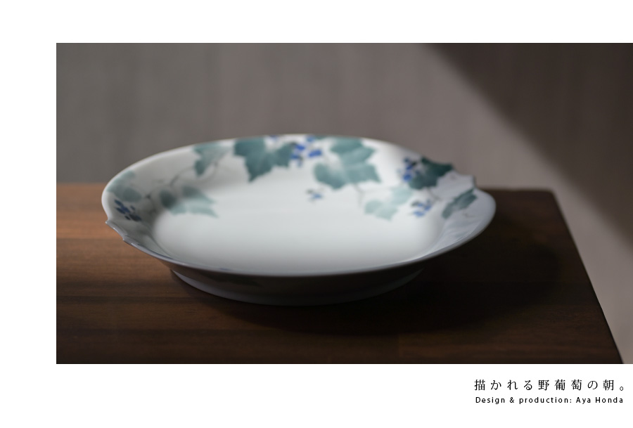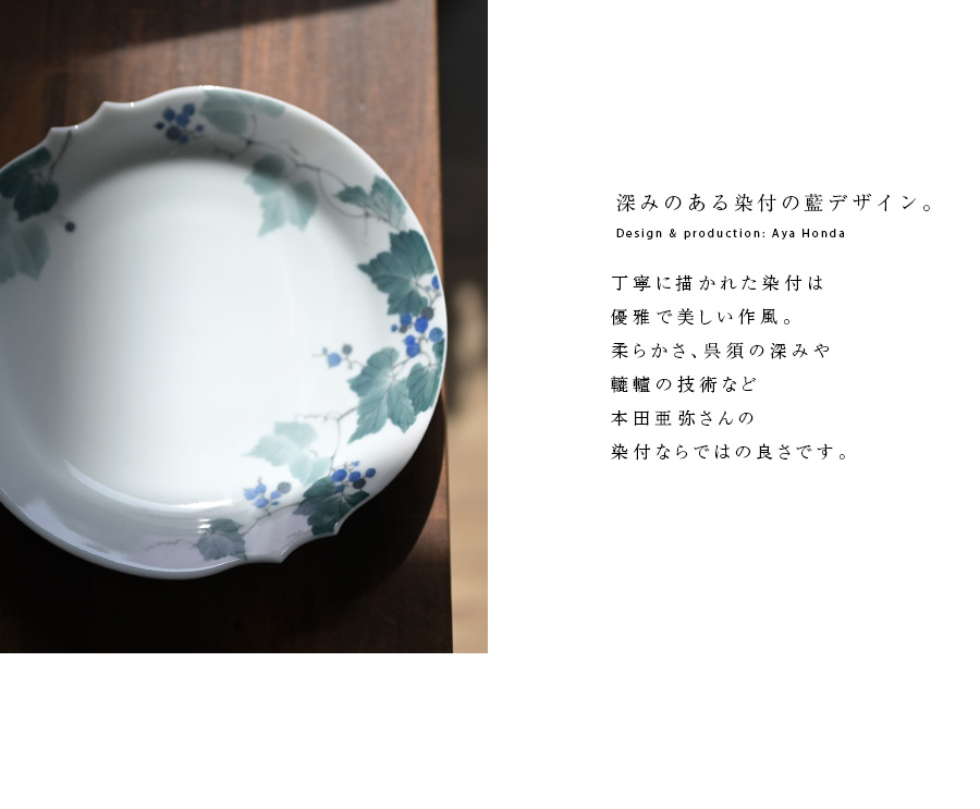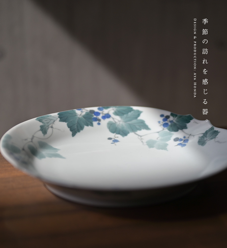 陶芸家:本多亜弥さんの季節の訪れを感じる大皿:染付野葡萄文皿。