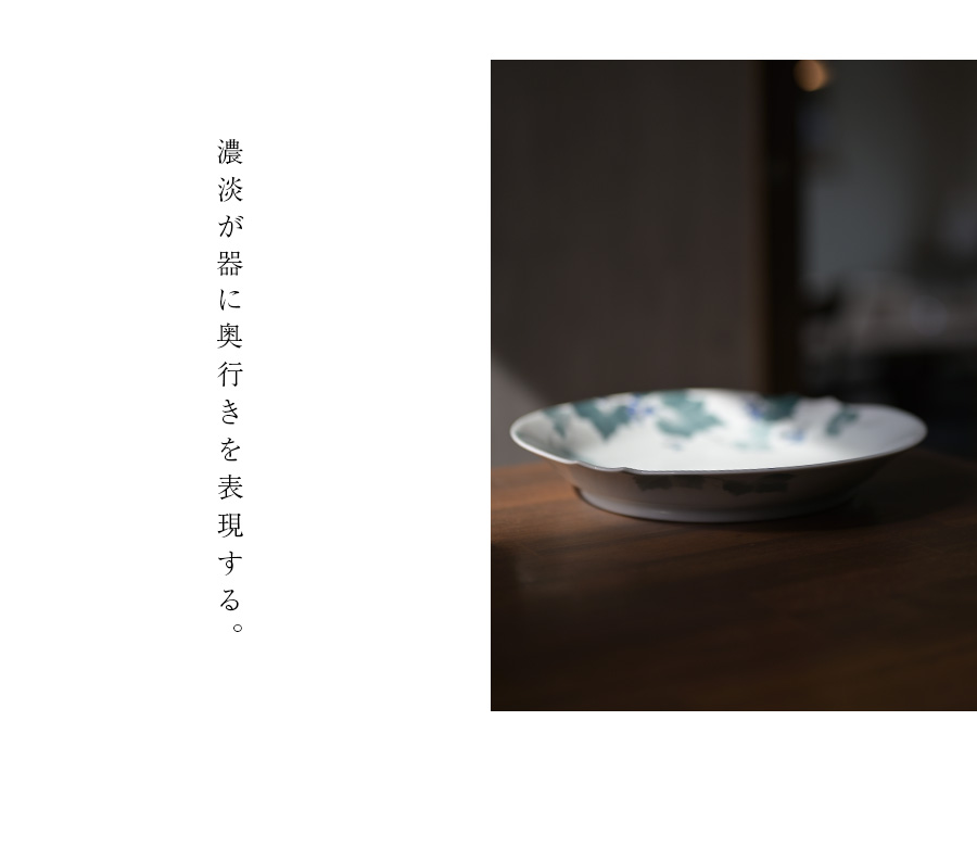 濃淡で描かれる絵付けは器に奥行きを感じさせる作品。