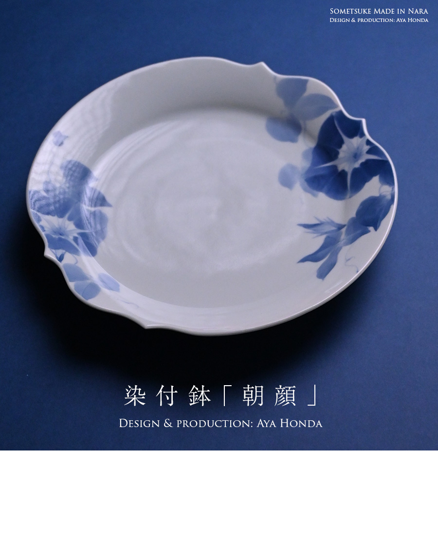陶芸家:本多亜弥さんの季節の訪れを感じる染付鉢「朝顔」。