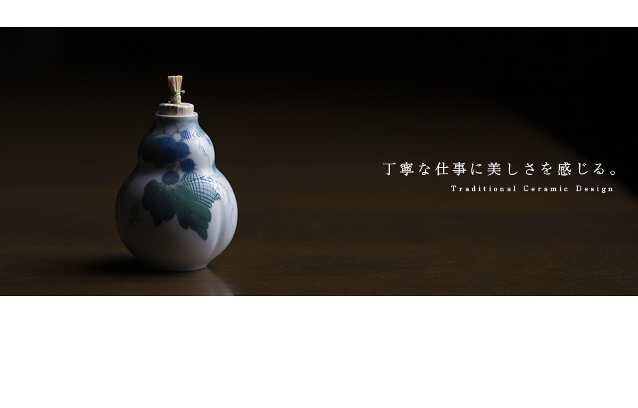 濃淡で描かれる絵付けは、淡いグリーンが器に奥行きを感じさせる作品。