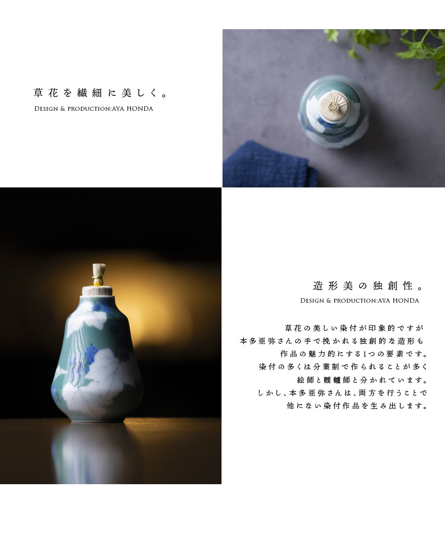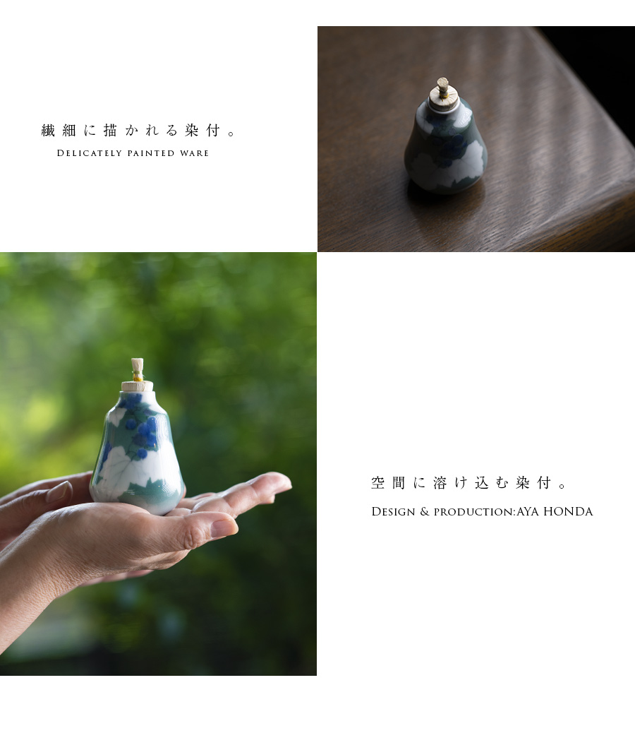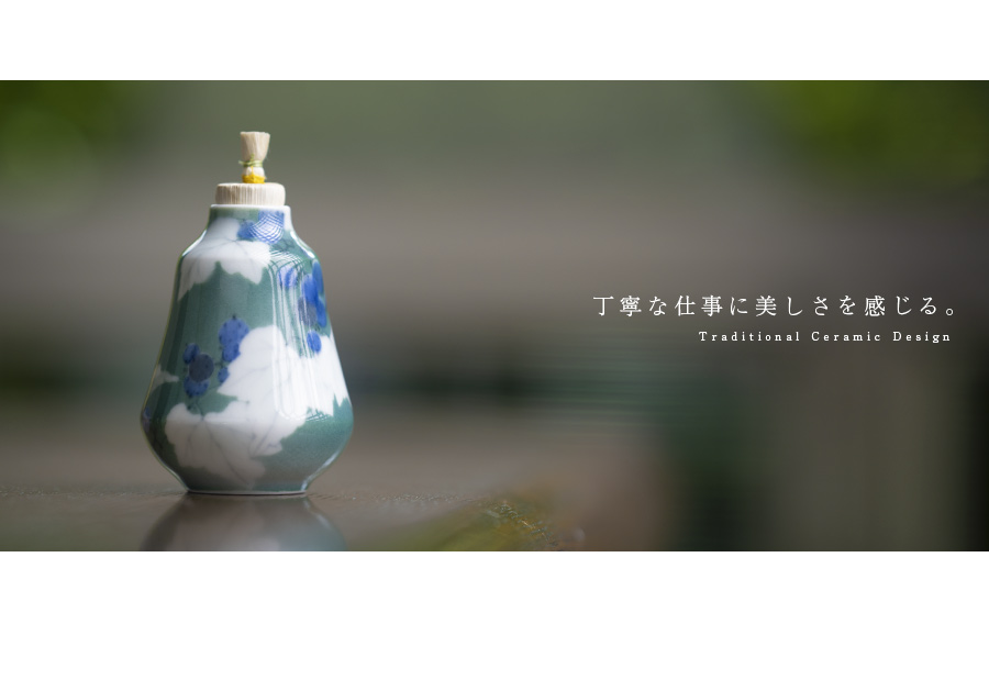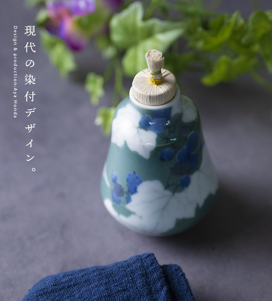 濃淡で描かれる絵付けは、淡いグリーンが器に奥行きを感じさせる作品。
