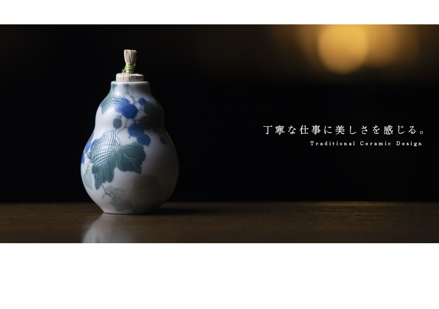 濃淡で描かれる絵付けは、淡いグリーンが器に奥行きを感じさせる作品。