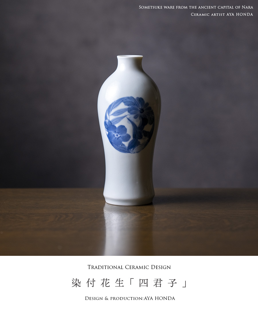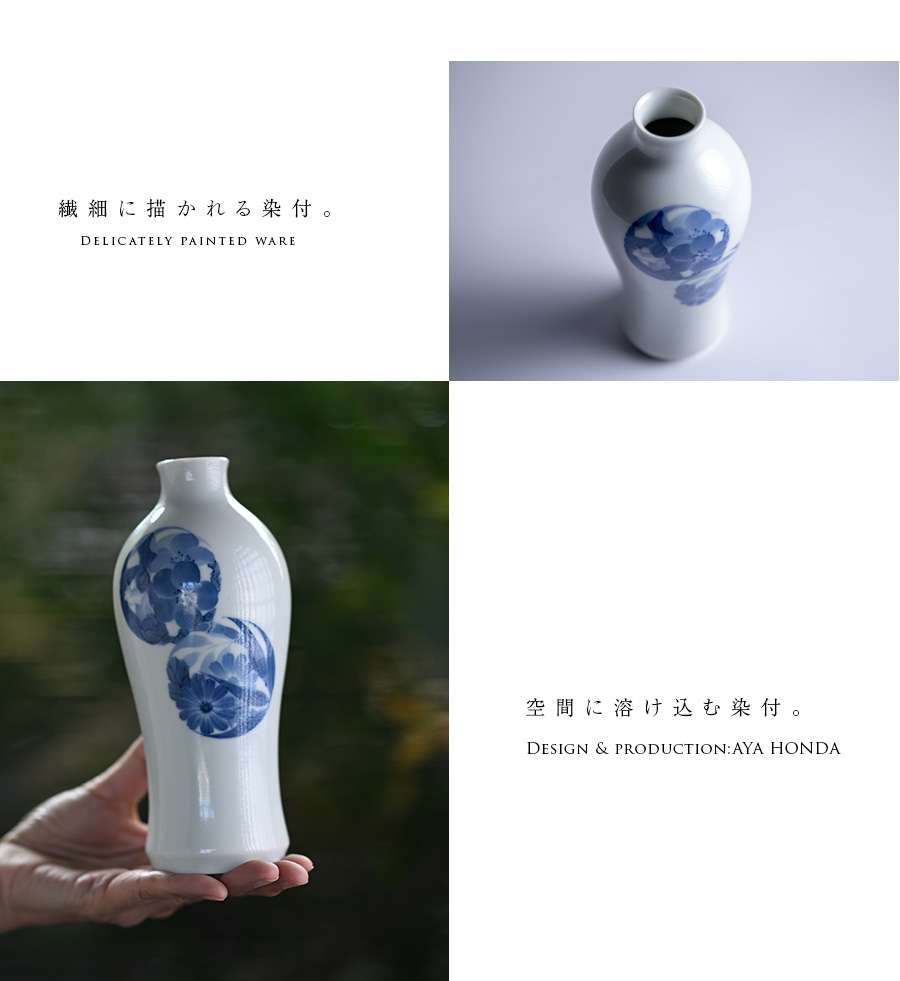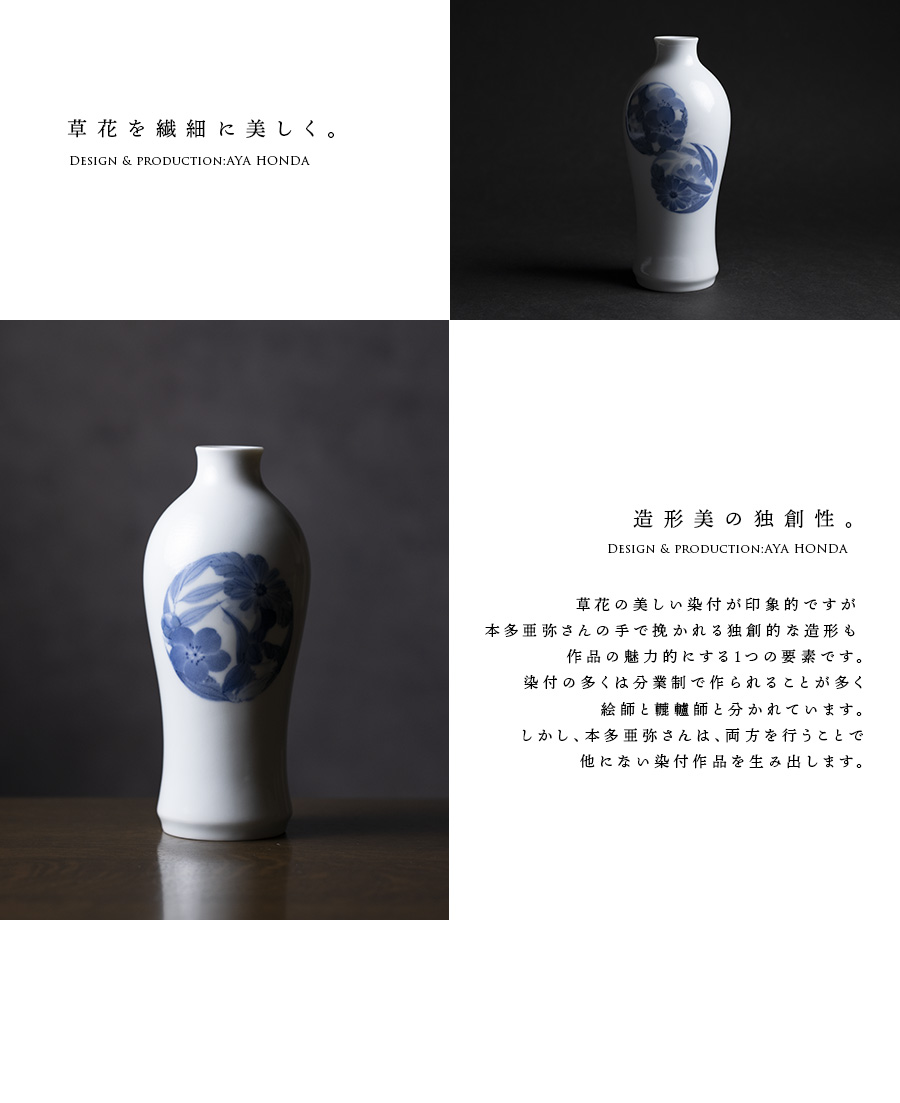 陶芸家:本多亜弥さんの美しい造形と染付花器。