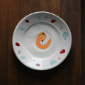 まんなかの黄色いコンマが生き物のようで、黒い点々が目にも 見えます。和食器だけあって、色は思ったより落ち着いた 感じで、赤色は、家のうるしのお椀の色とほぼおなじでした。 なので、並べても違和感はありませんでした。 |