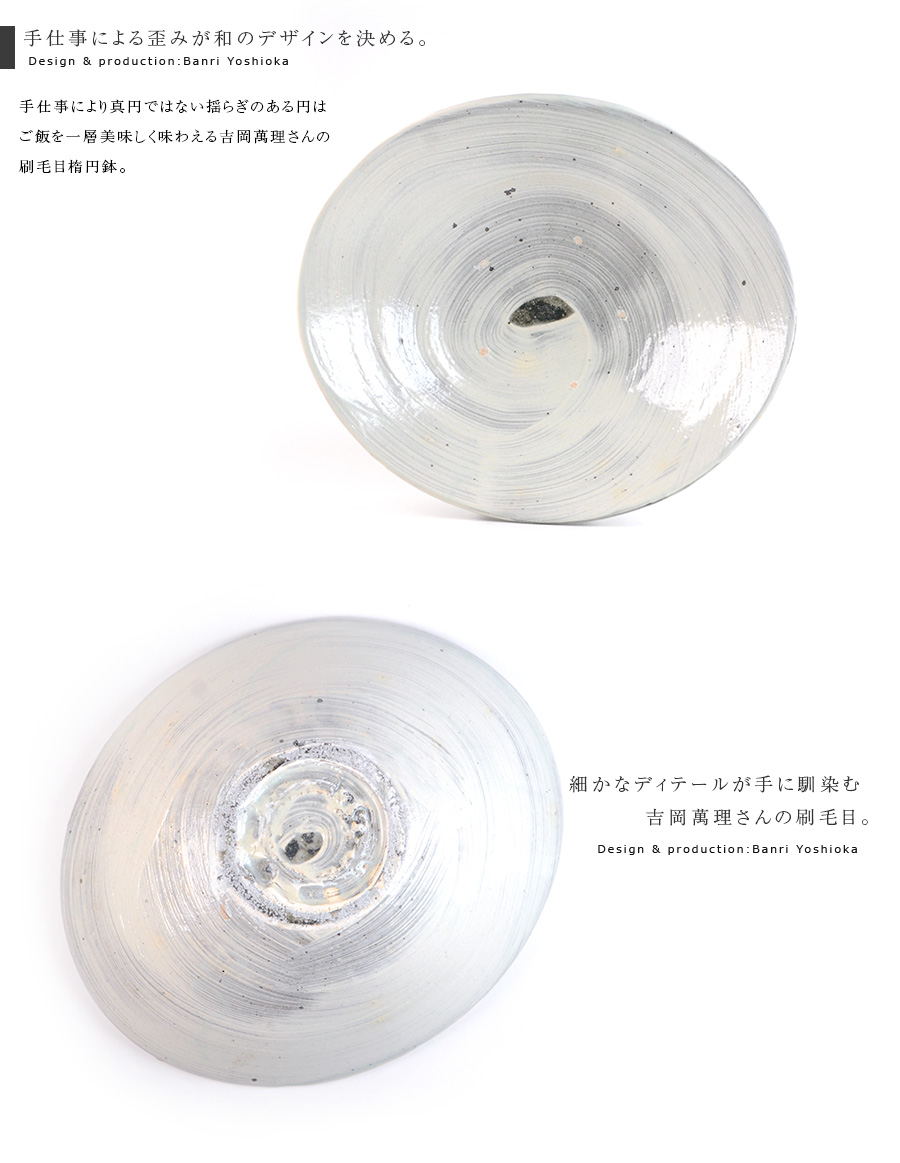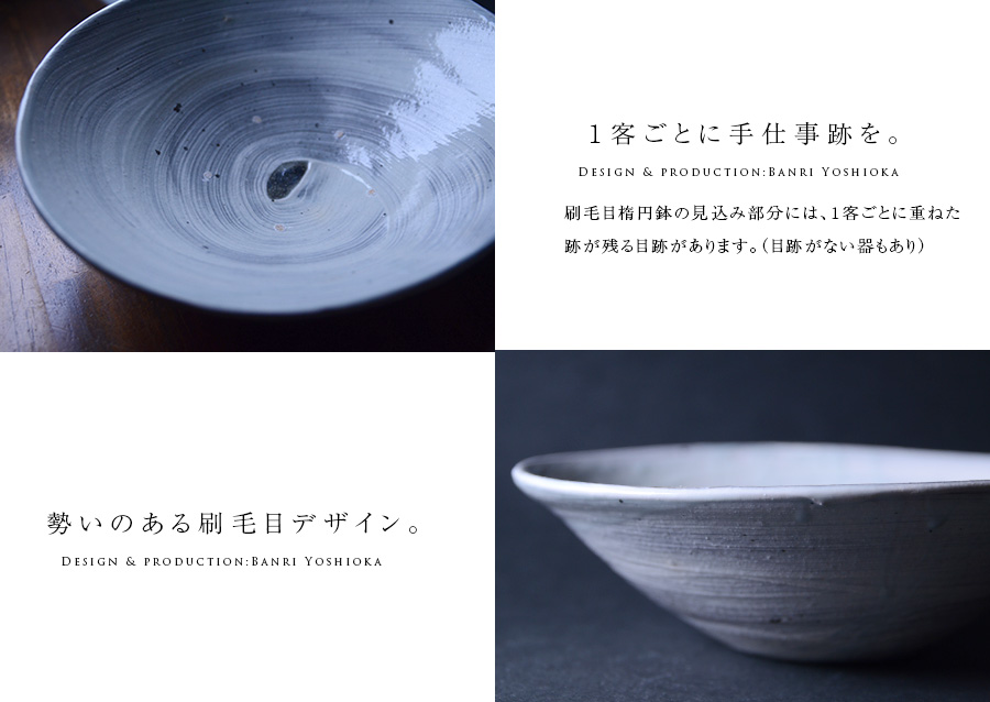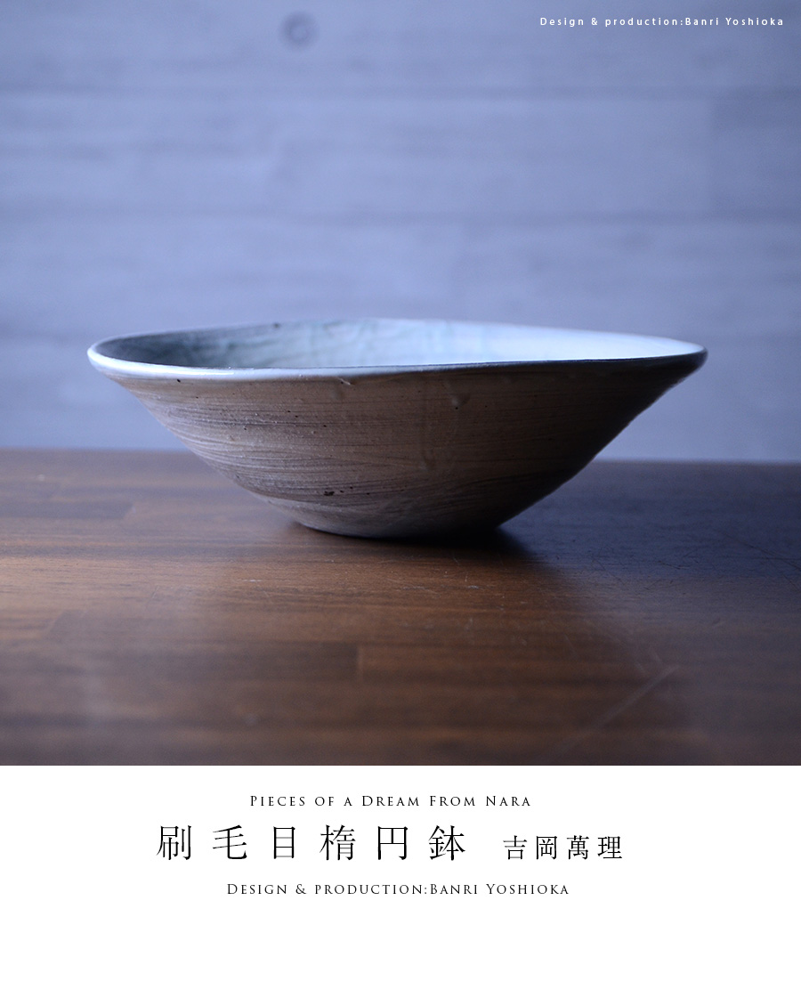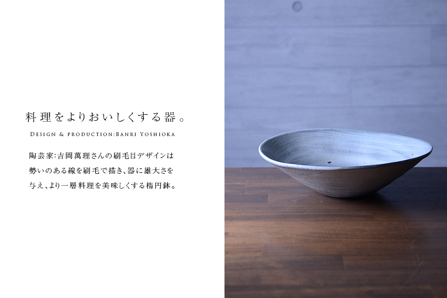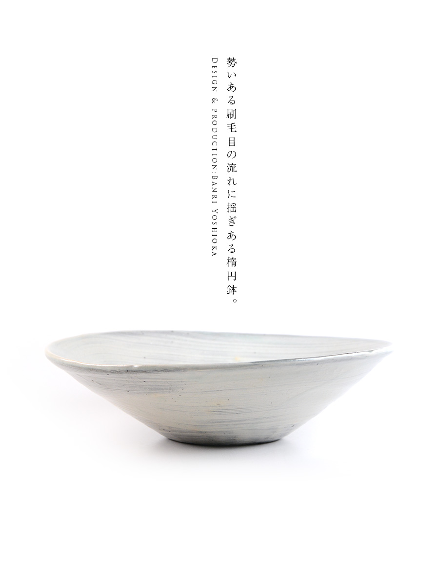 注目の作家「吉岡萬理」さんの和食器、刷毛目楕円鉢。