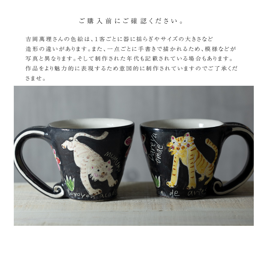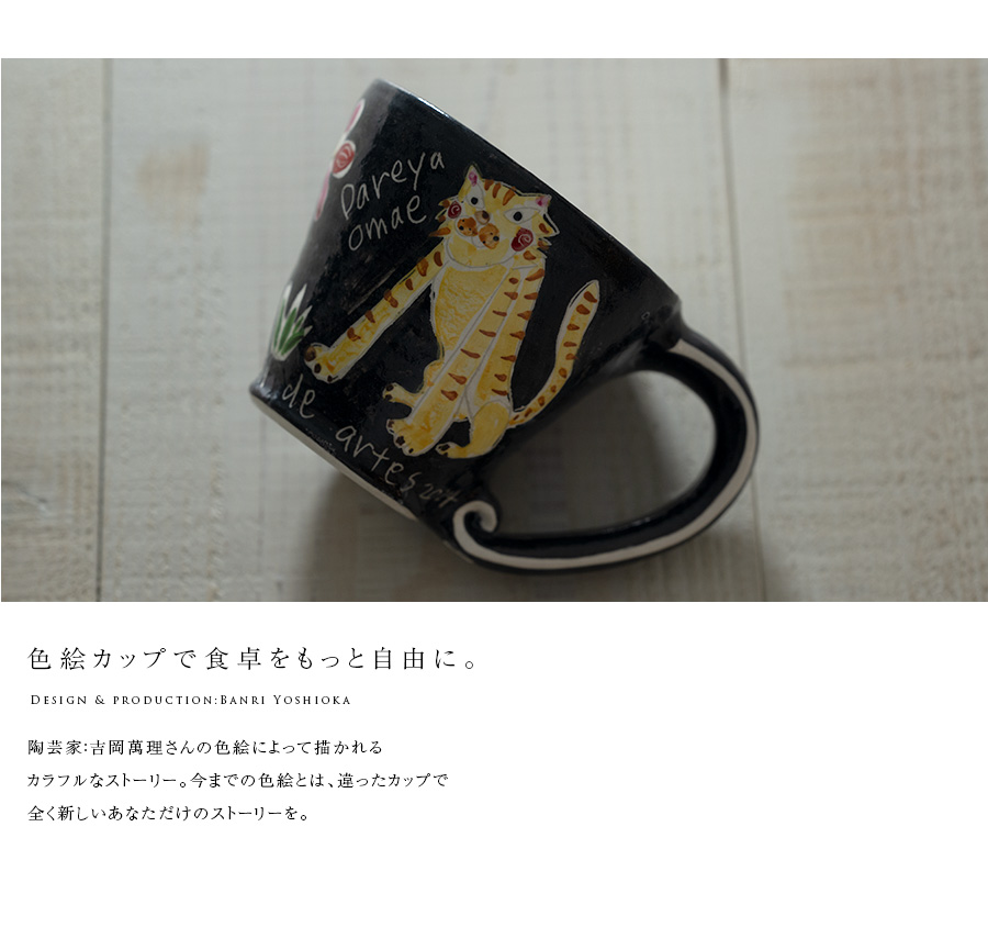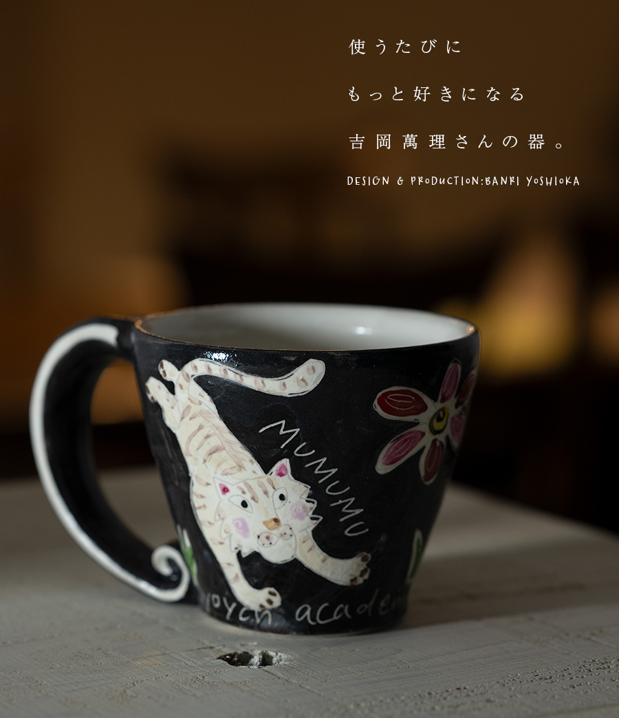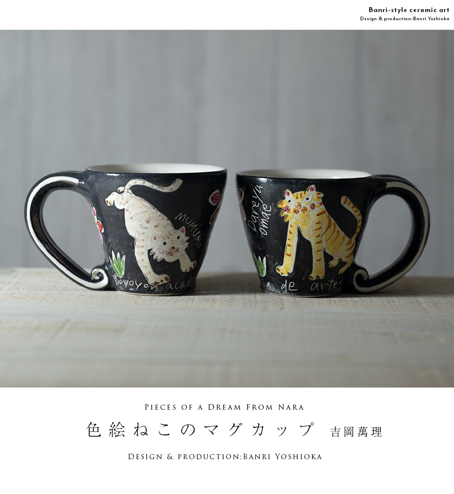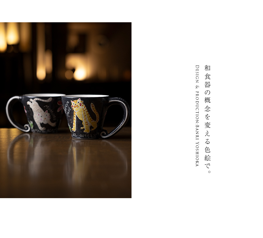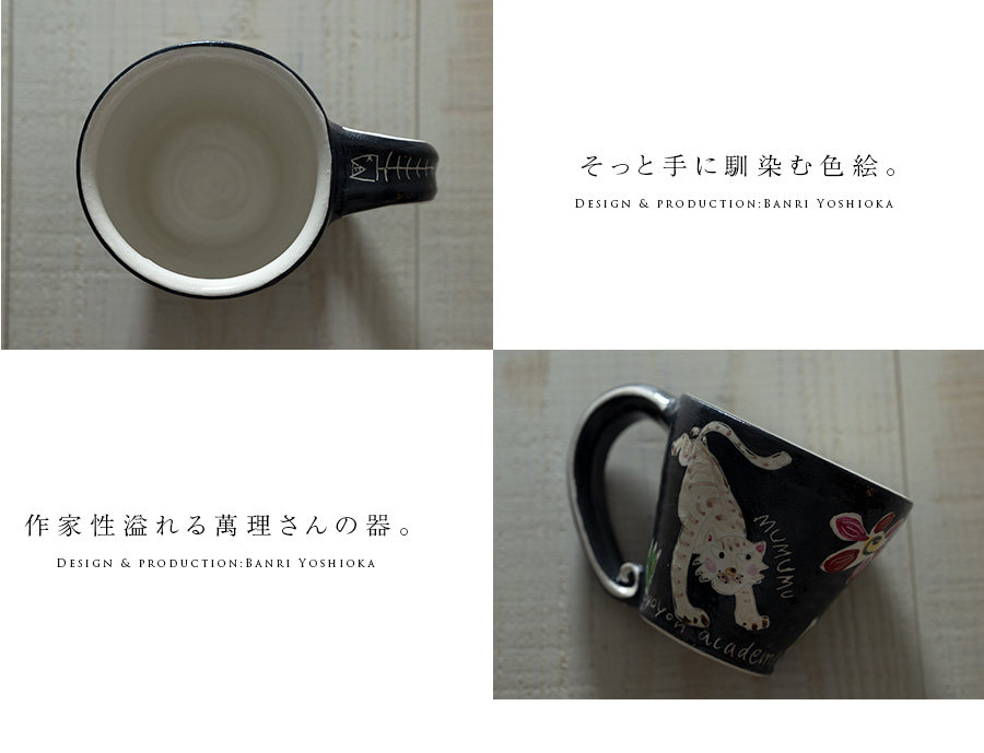 Mug Cup | 色絵 ねこのブラックマグカップ(BY-402) 作家「吉岡萬理」