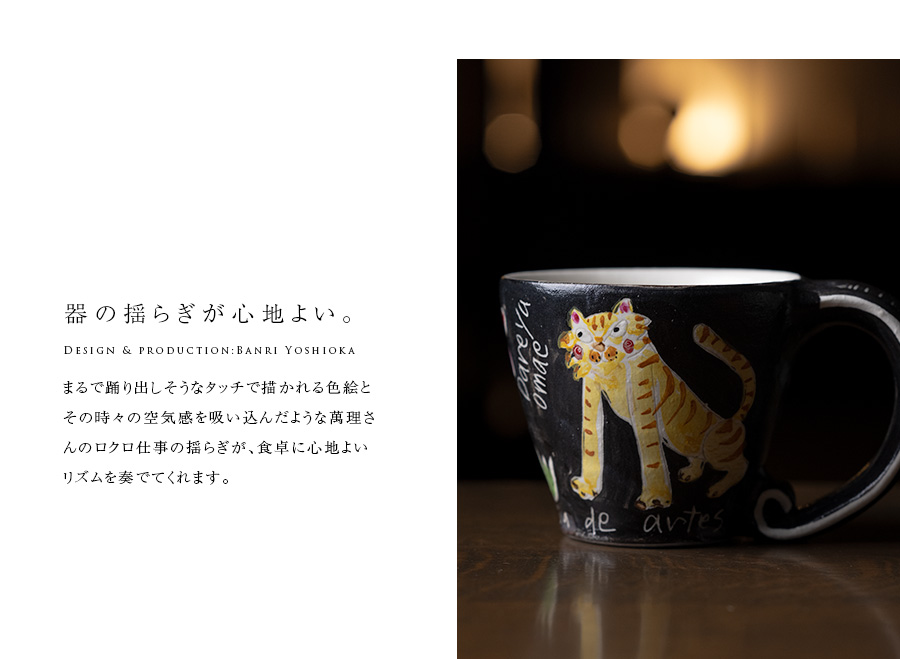 陶芸家:吉岡萬理さんの色絵マグカップ。