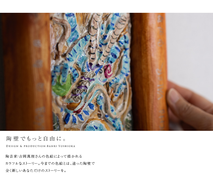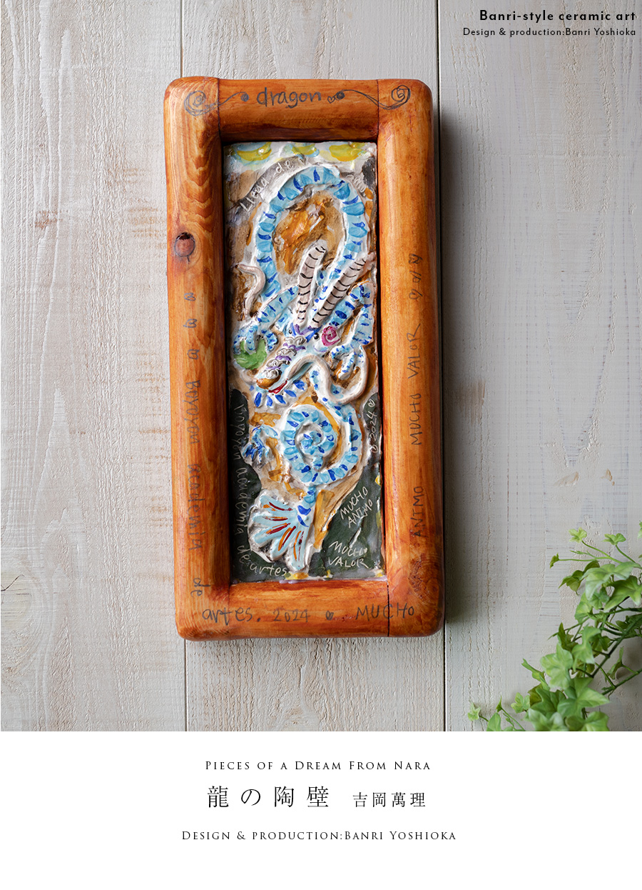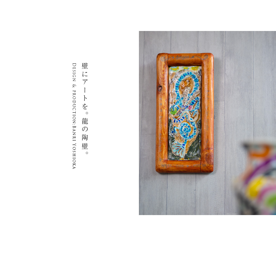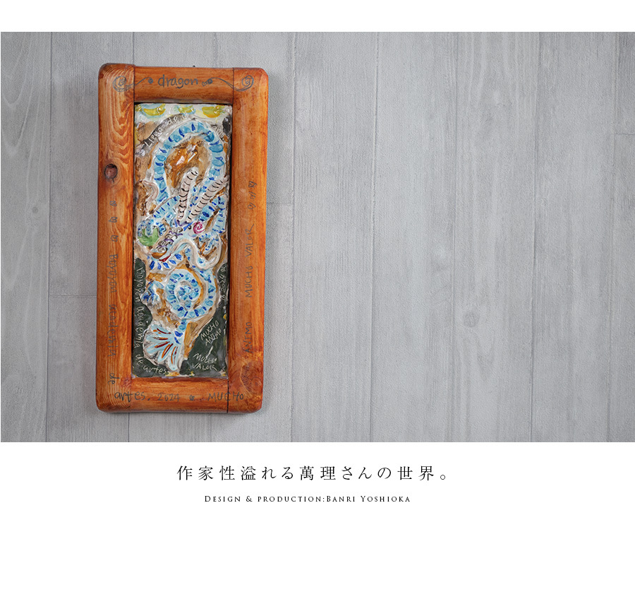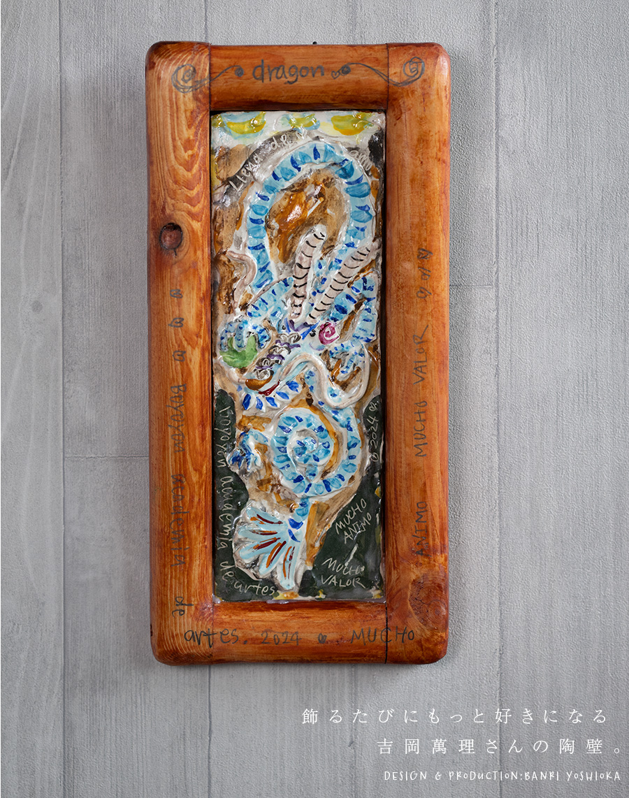 陶芸家:吉岡萬理さんの龍の陶壁。