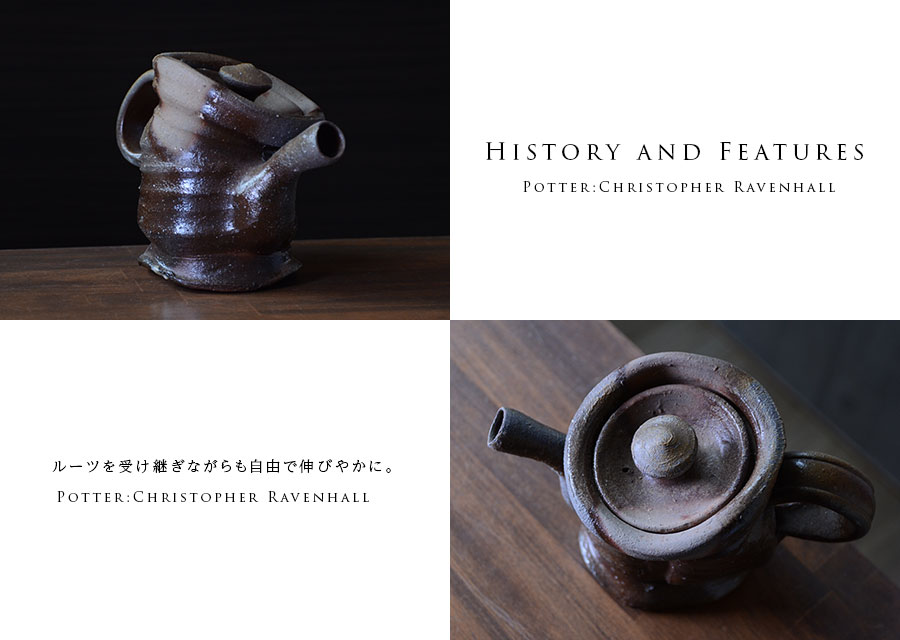 イギリス生まれの備前焼・作家「Christopher Ravenhall/クリストファー レイヴェンホール)」さんのティーポット。