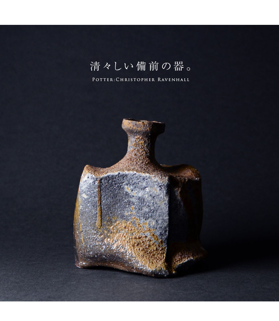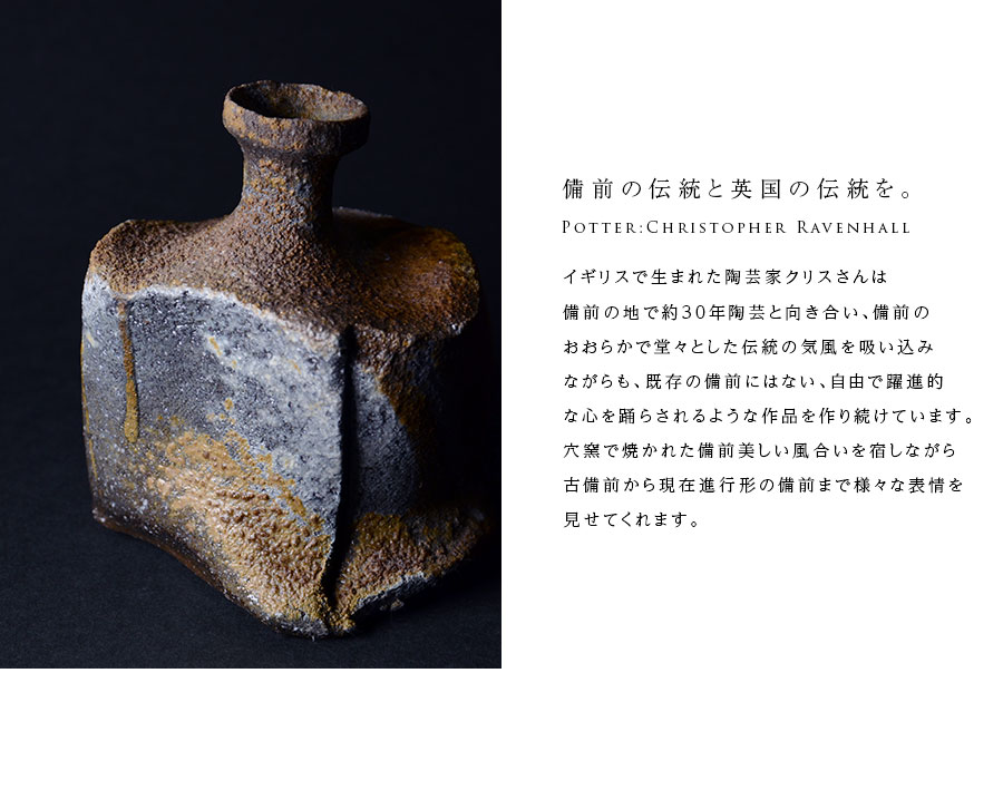 イギリス生まれの備前焼・作家「Christopher Ravenhall/クリストファー レイヴェンホール)」さんの徳利。