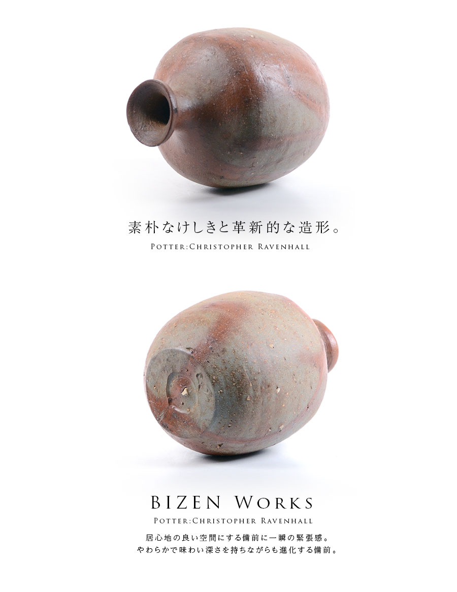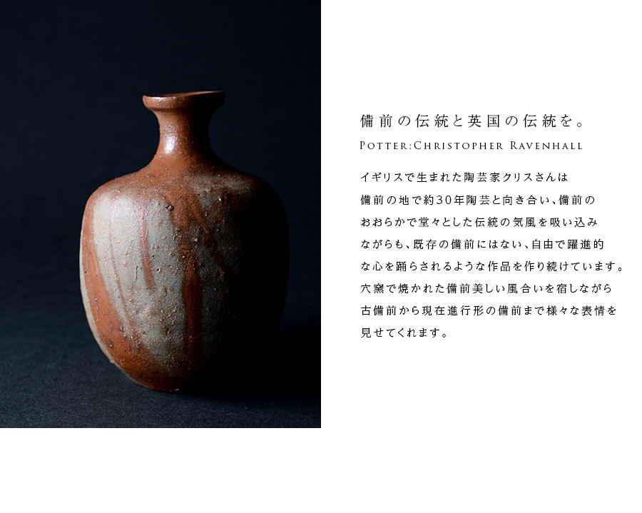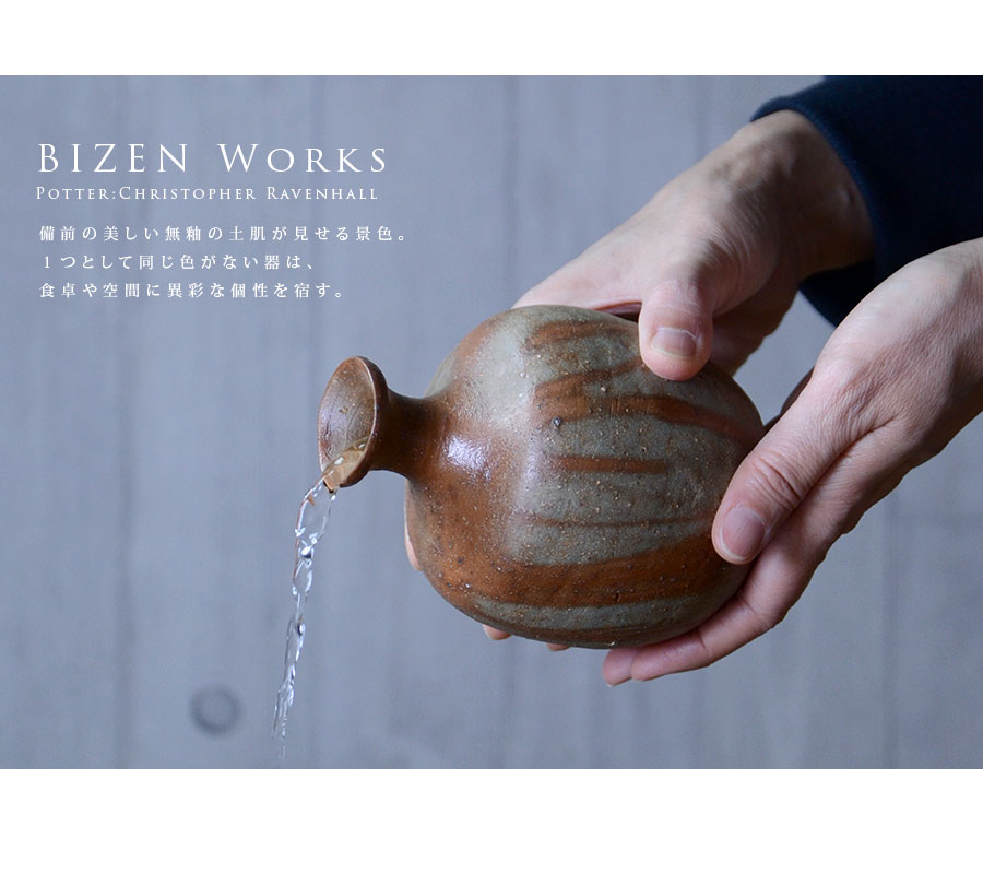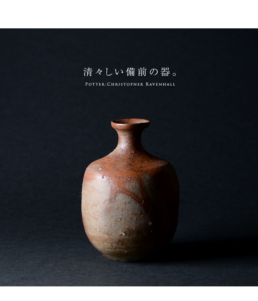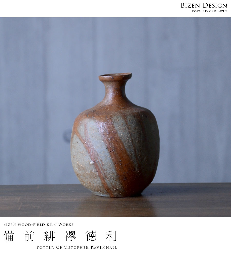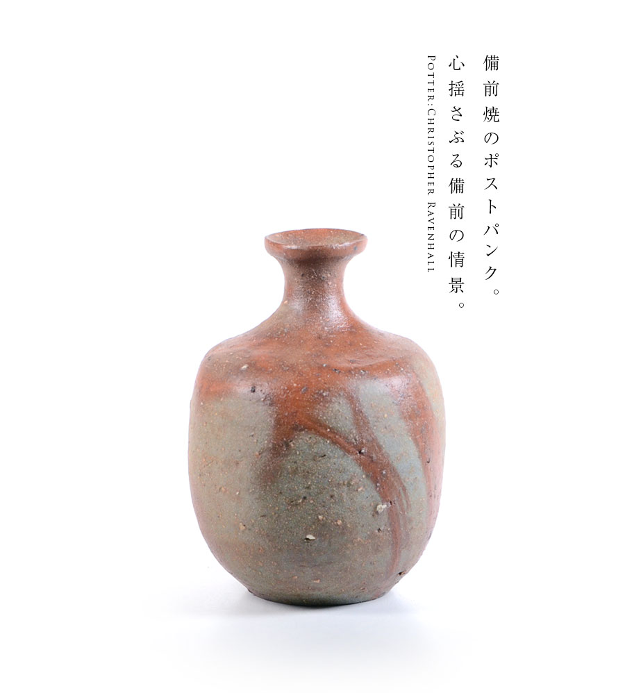 イギリス生まれの備前焼・作家「Christopher Ravenhall/クリストファー レイヴェンホール)」さんの徳利。