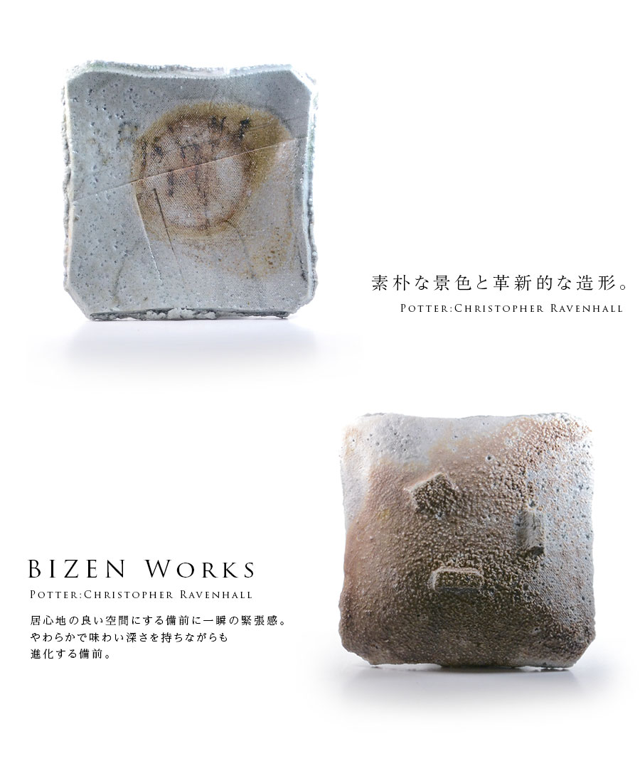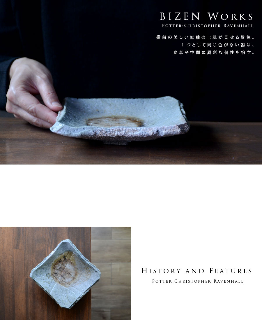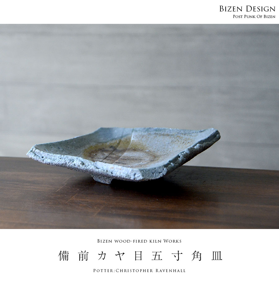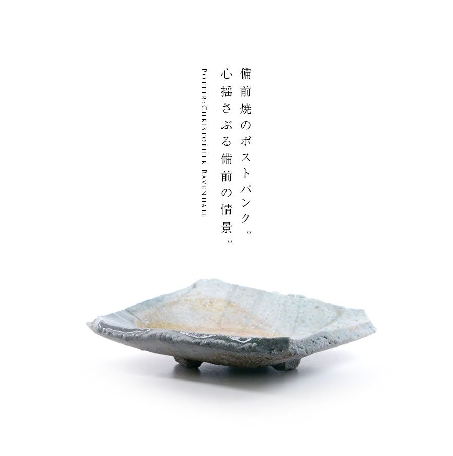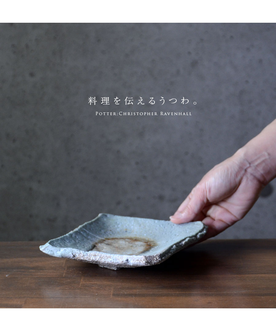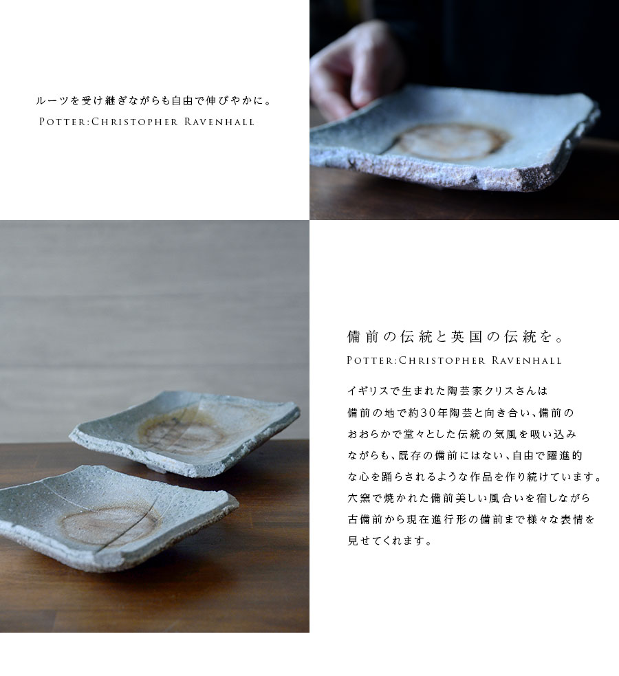 イギリス生まれの備前焼・作家「Christopher Ravenhall/クリストファー レイヴェンホール)」さんの角皿。