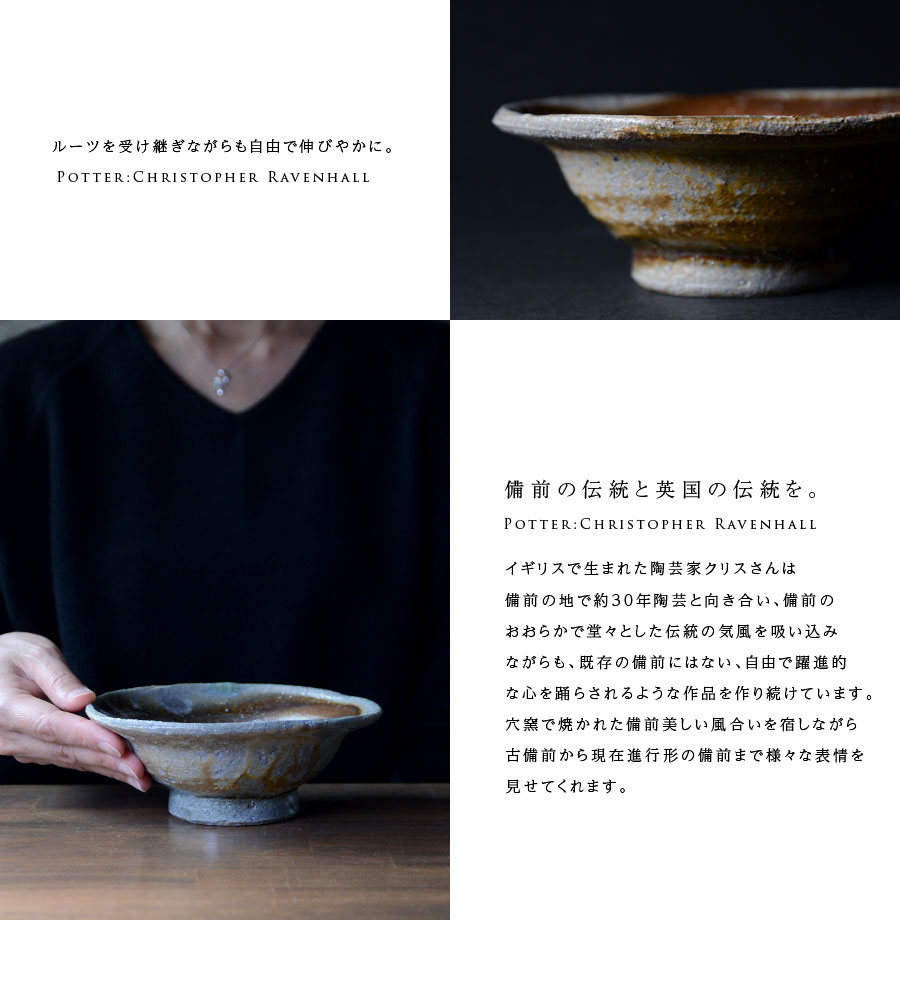 イギリス生まれの備前焼・作家「Christopher Ravenhall/クリストファー レイヴェンホール)」さんの鉢。