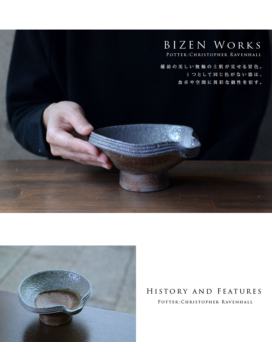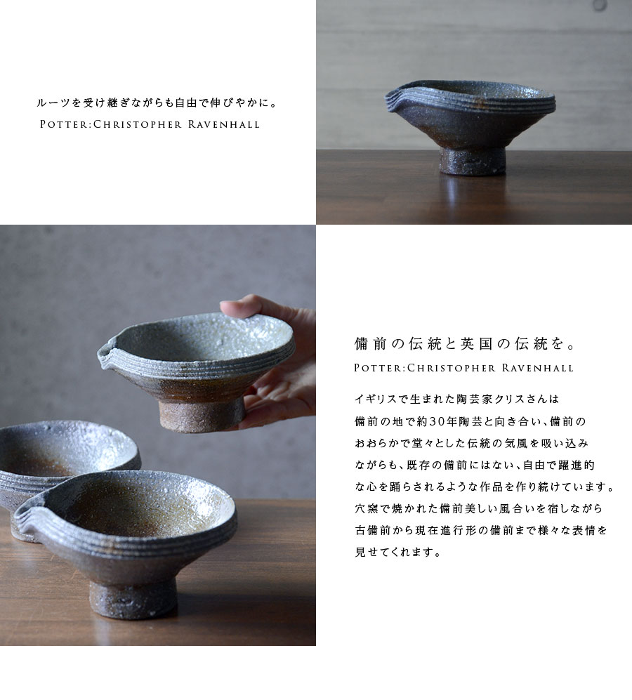 イギリス生まれの備前焼・作家「Christopher Ravenhall/クリストファー レイヴェンホール)」さんの鉢。