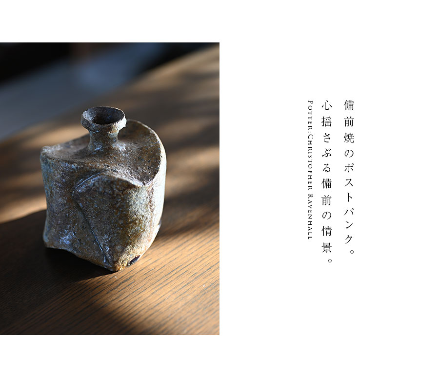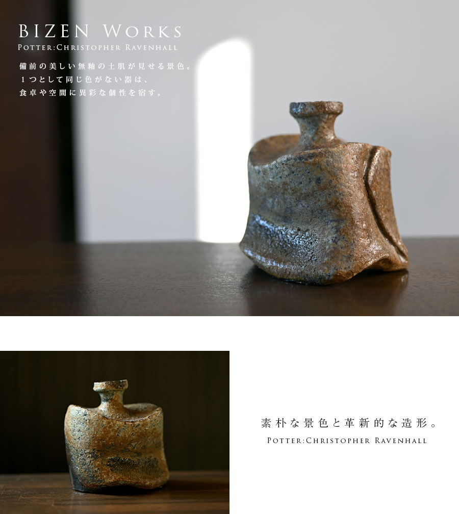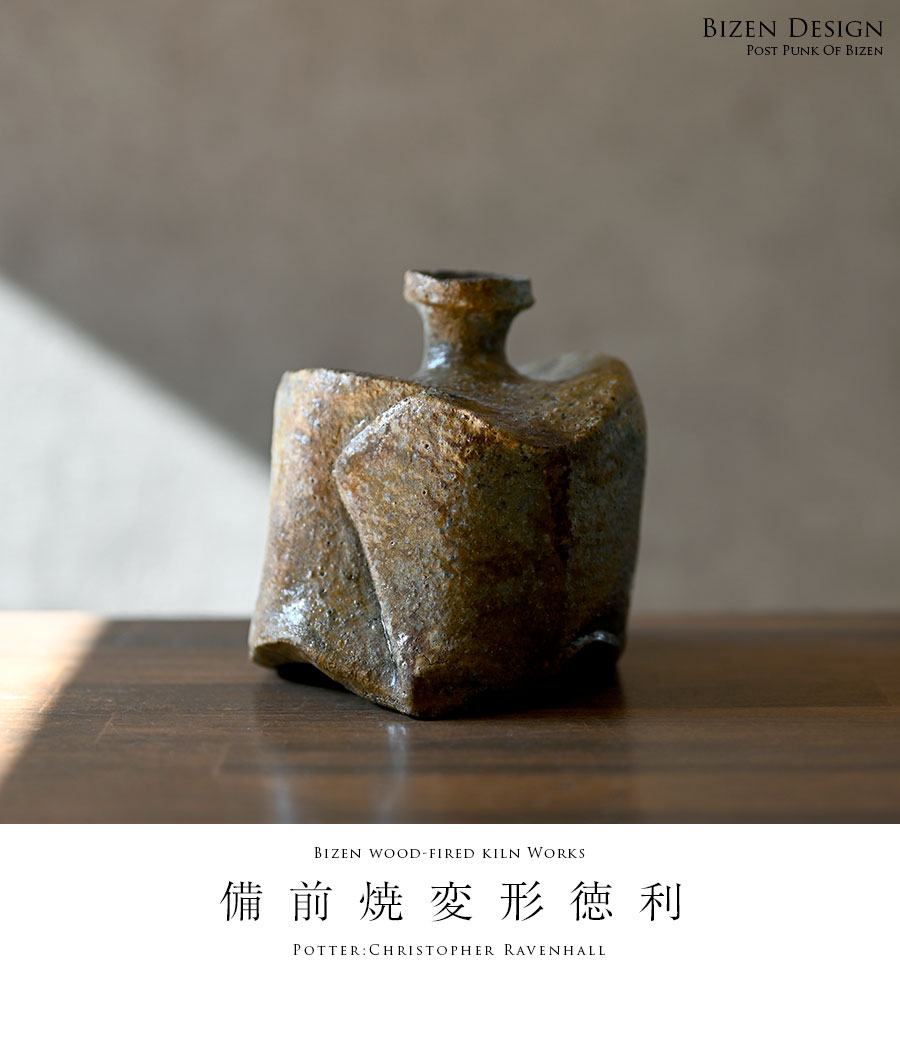 イギリス生まれの備前焼・作家「Christopher Ravenhall/クリストファー レイヴェンホール)」さんの備前焼変形徳利。