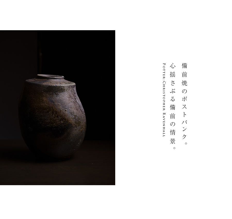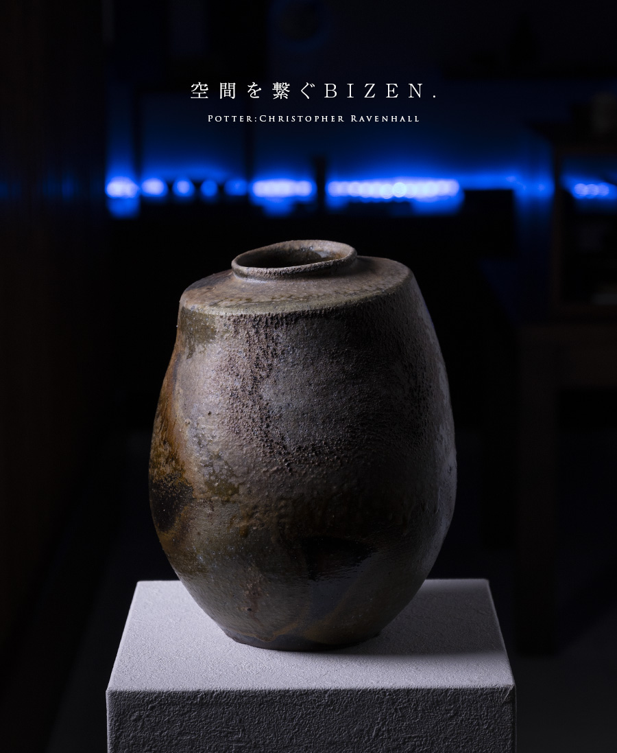 イギリス生まれの備前焼・作家「Christopher Ravenhall/クリストファー レイヴェンホール)」さんの備前焼壺。