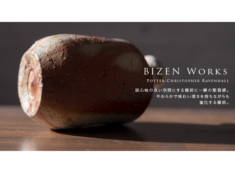 イギリス生まれの備前焼・作家「Christopher Ravenhall/クリストファー レイヴェンホール)」さんの緋襷徳利。