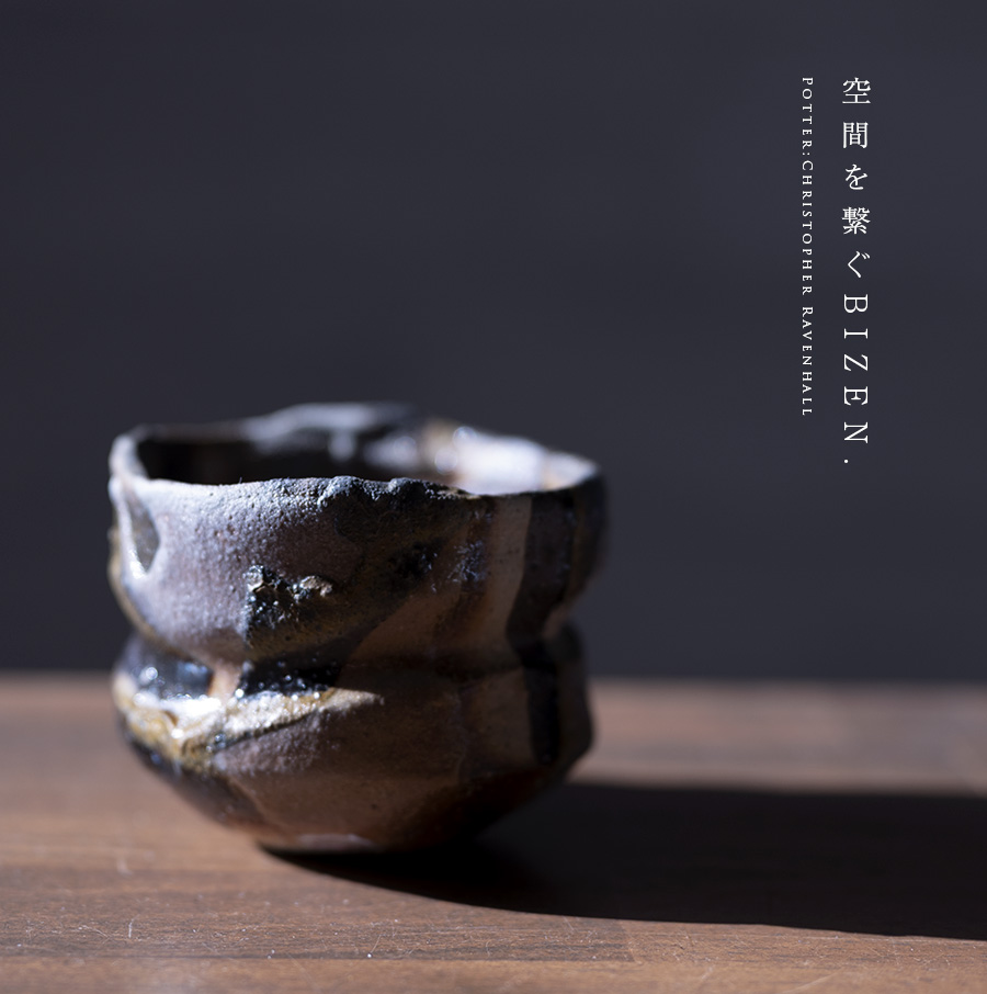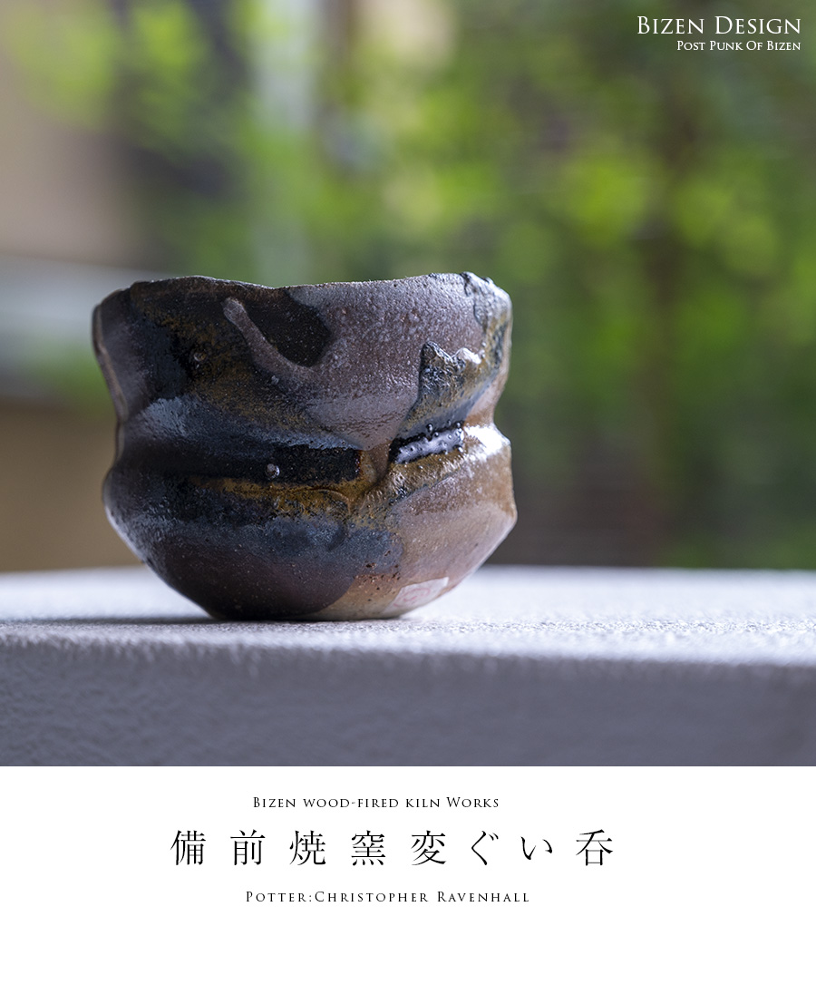 イギリス生まれの備前焼・作家「Christopher Ravenhall/クリストファー レイヴェンホール)」さんの備前焼窯変ぐい呑。