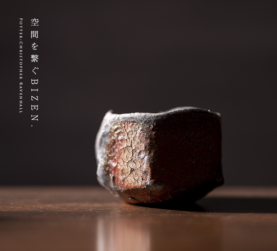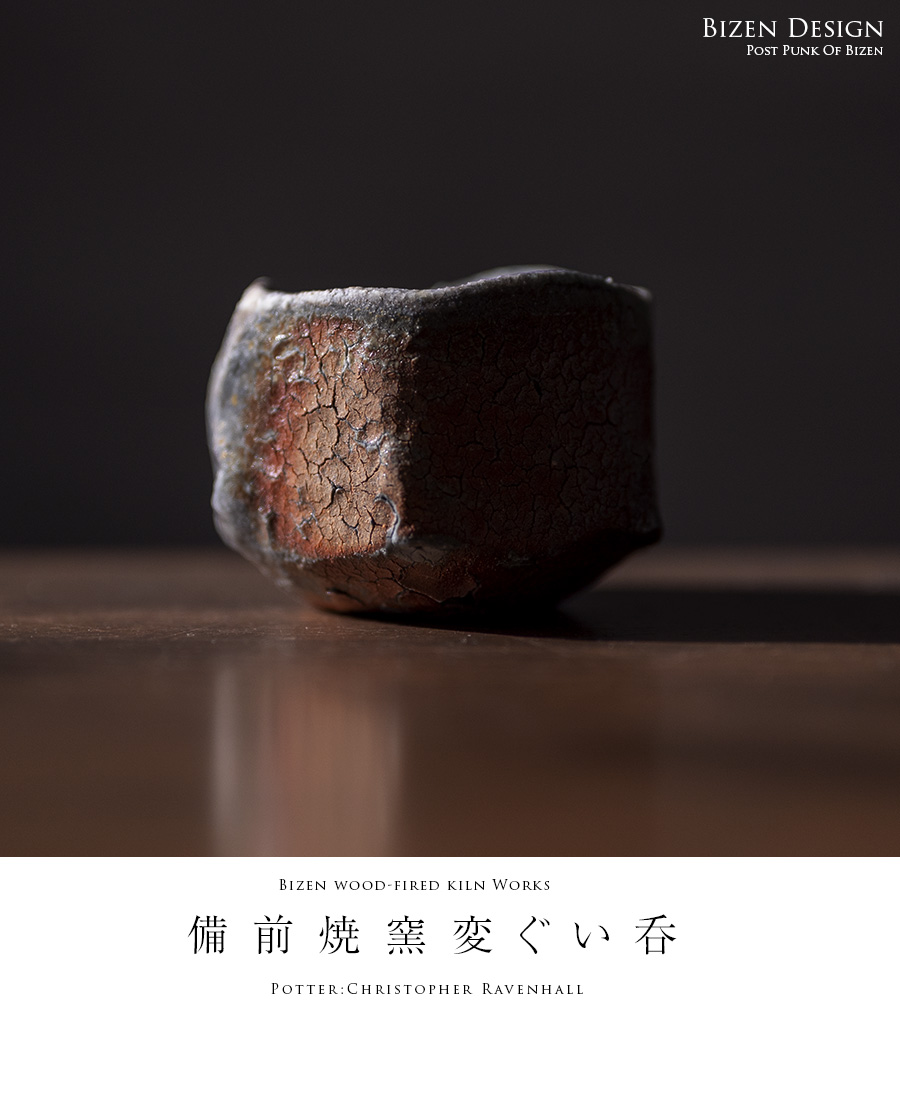 イギリス生まれの備前焼・作家「Christopher Ravenhall/クリストファー レイヴェンホール)」さんの備前焼窯変ぐい呑。