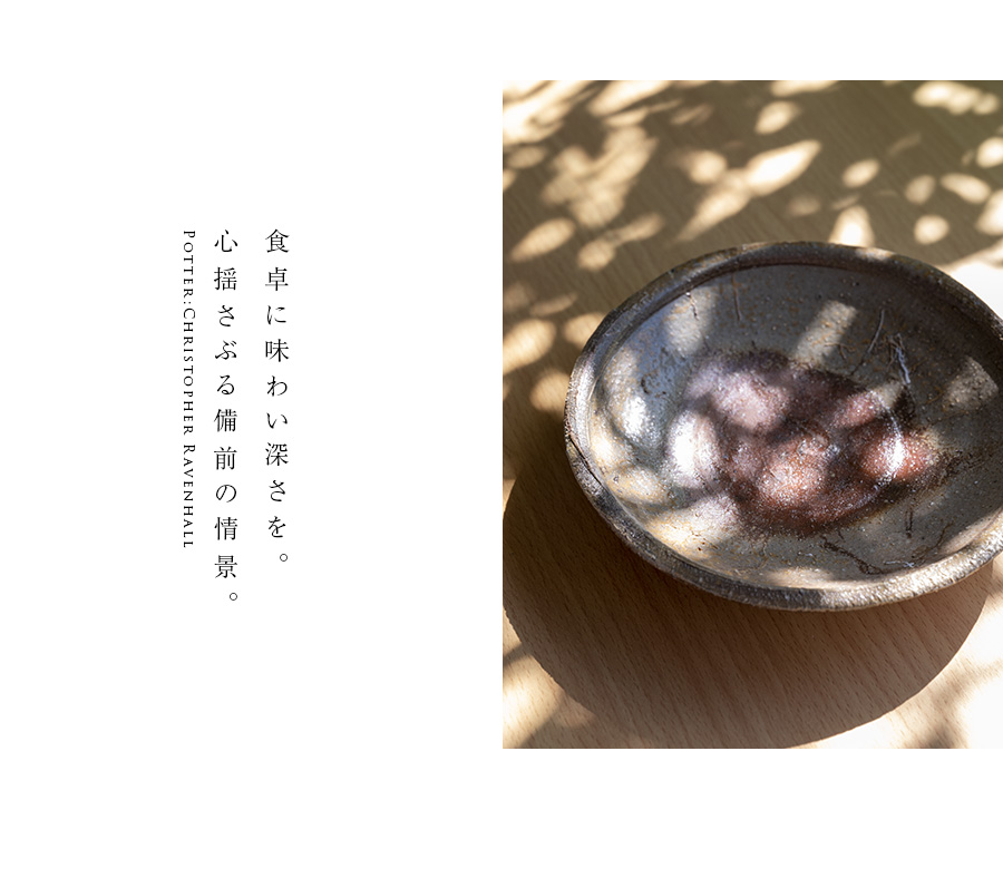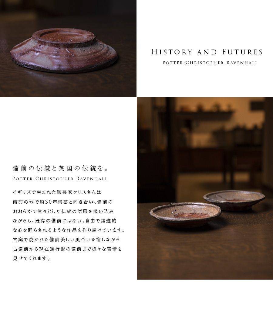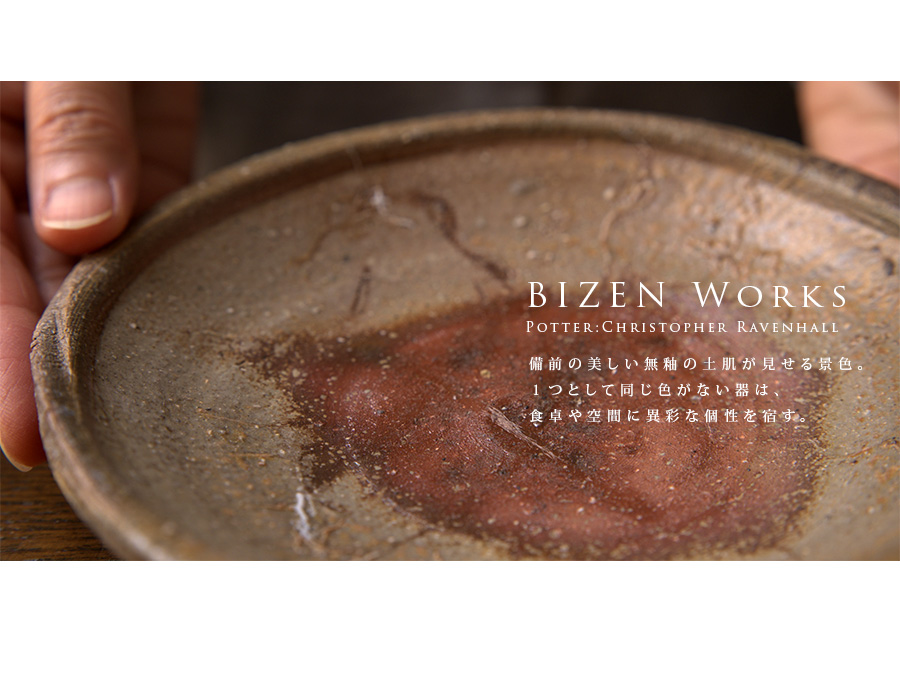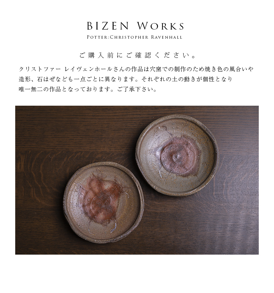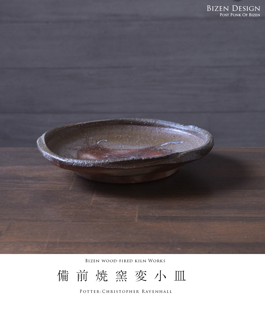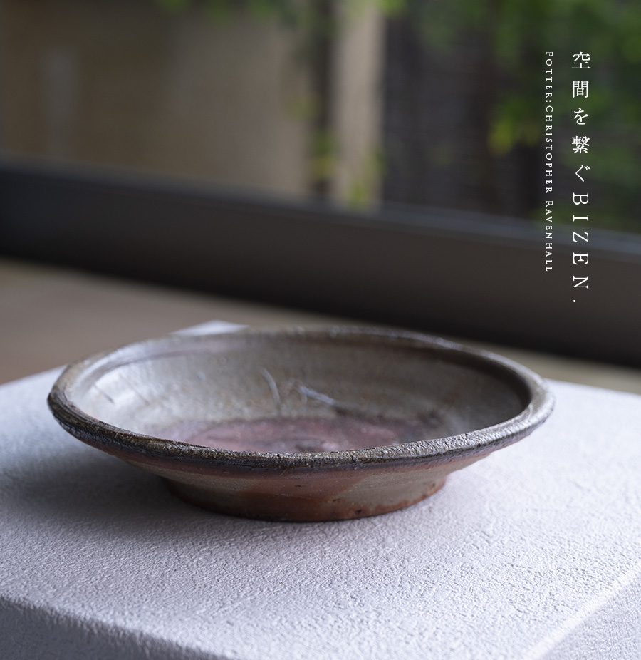 イギリス生まれの備前焼・作家「Christopher Ravenhall/クリストファー レイヴェンホール)」さんの備前焼窯変小皿-16cm-。