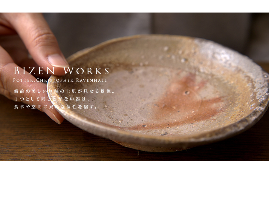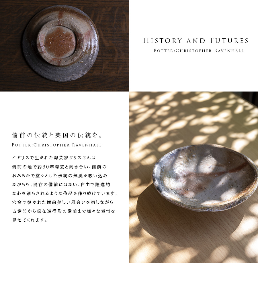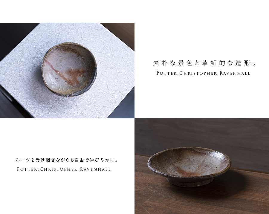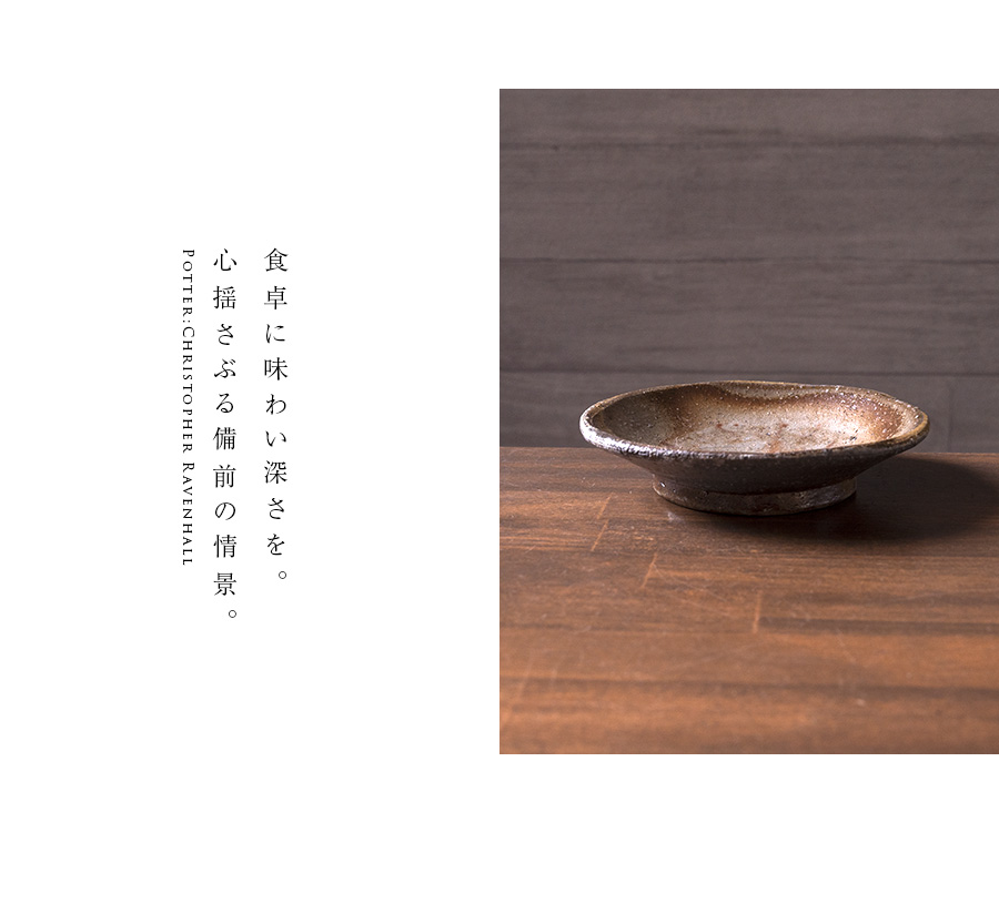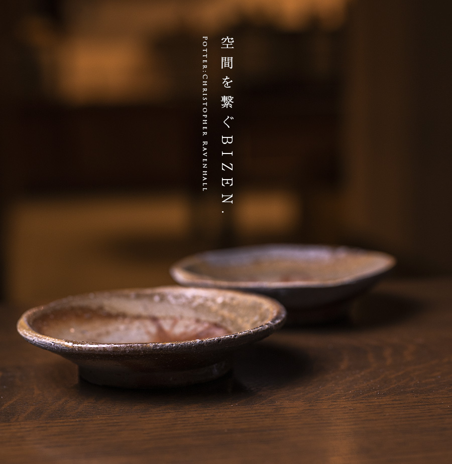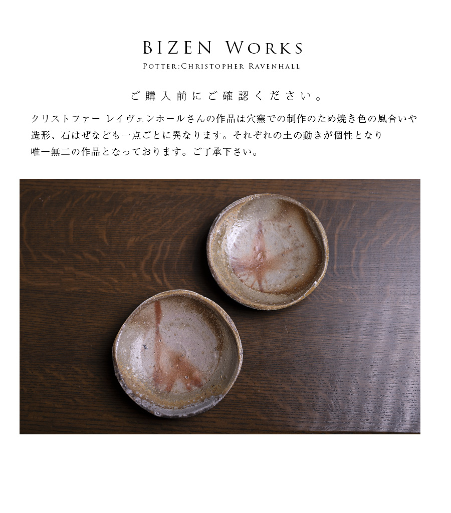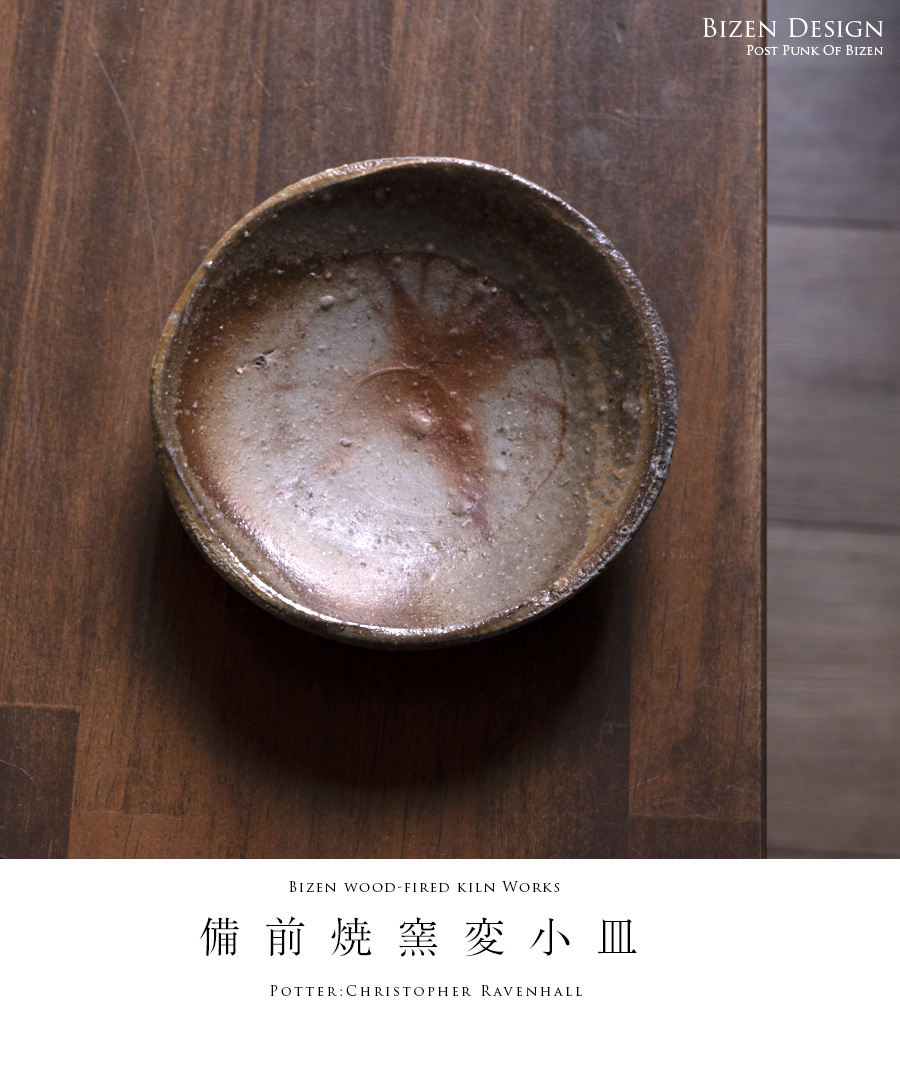 イギリス生まれの備前焼・作家「Christopher Ravenhall/クリストファー レイヴェンホール)」さんの備前焼窯変小皿-14cm-。