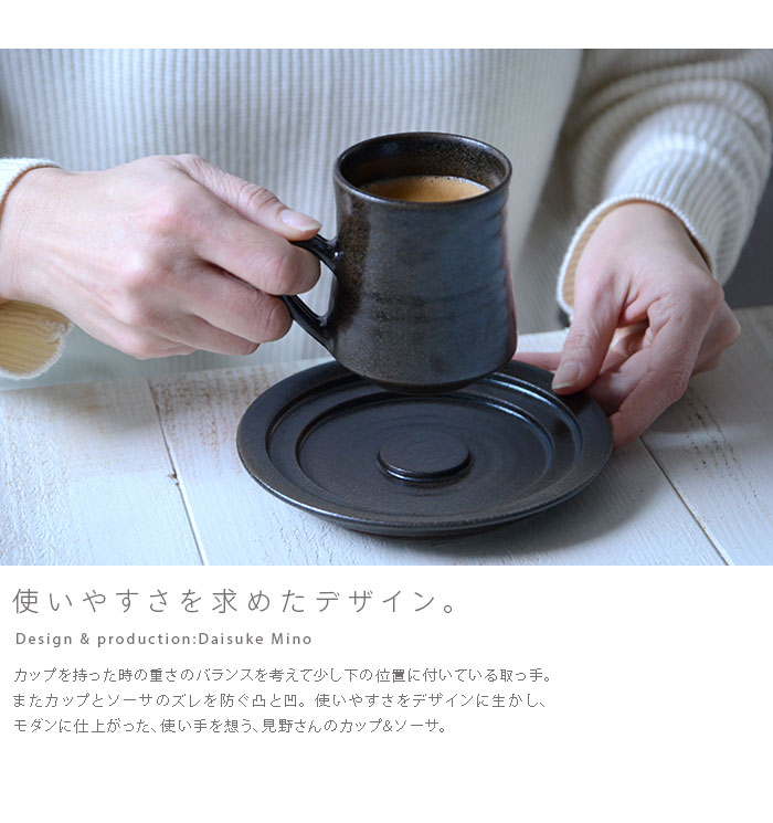 カップがソーサーからズレない実用的なデザインで
