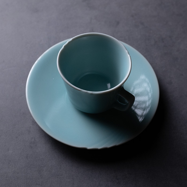 京都から美しい現代の青白磁カップ&ソーサー。
