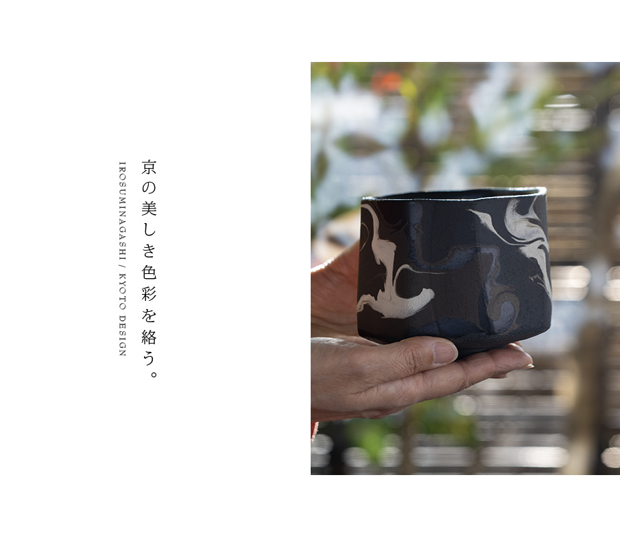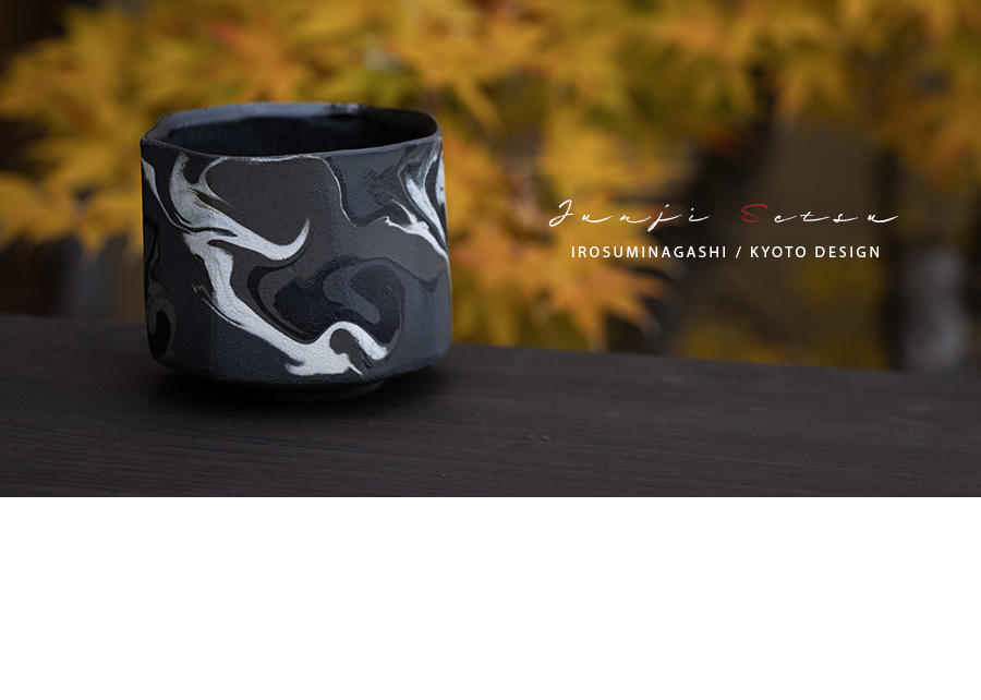独自の技法で制作する瀬津純司さんの彩墨流デザイン。