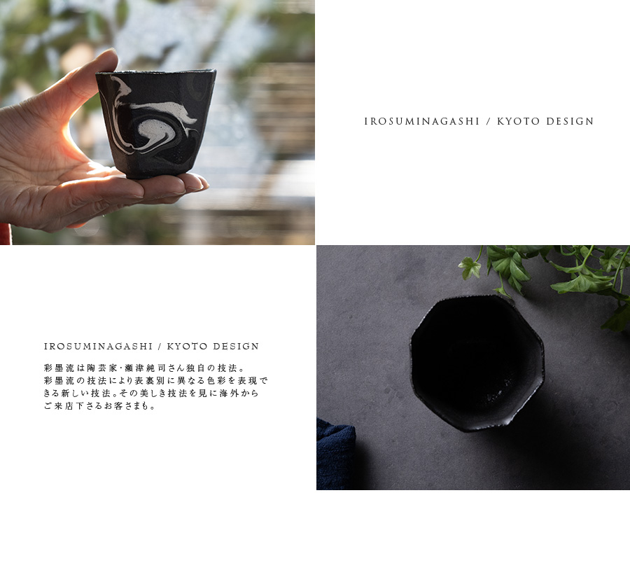 独自の技法で制作する瀬津純司さんの彩墨流デザイン。