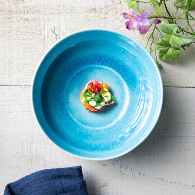 京都で作陶する荒木漢一さんが制作するトルコブルーが美しい和食器。