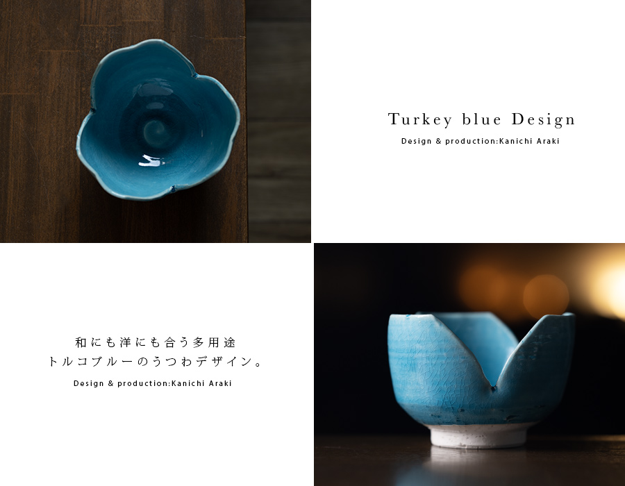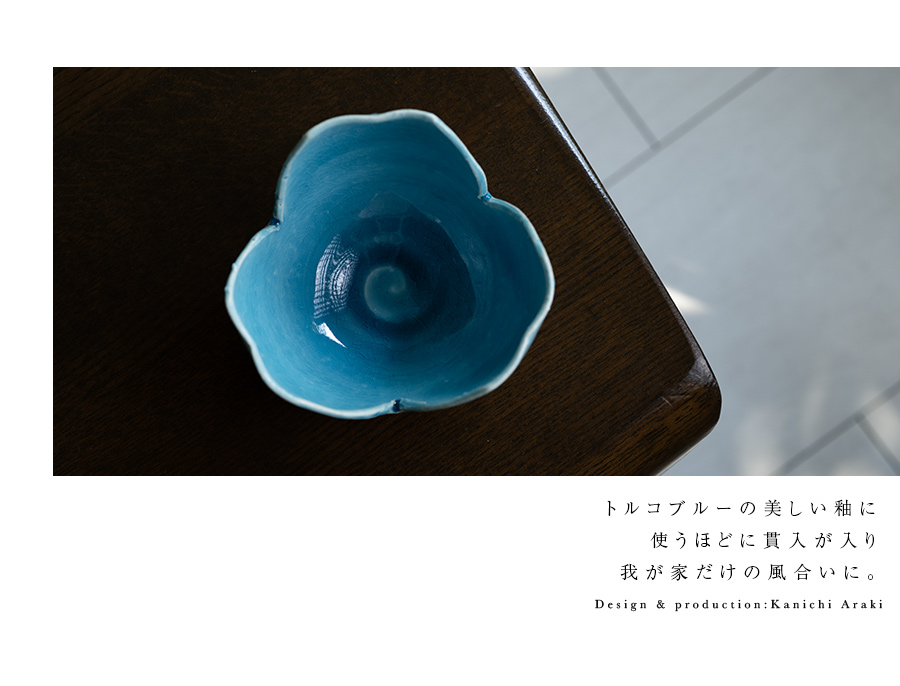 陶芸家:荒木漢一さんのトルコブルー割山椒。