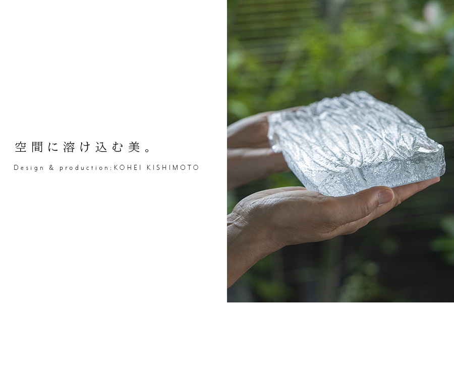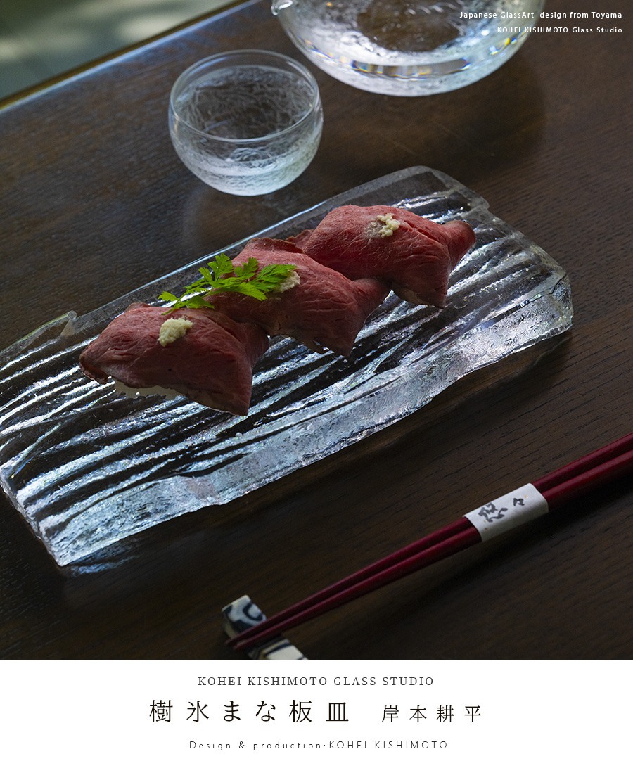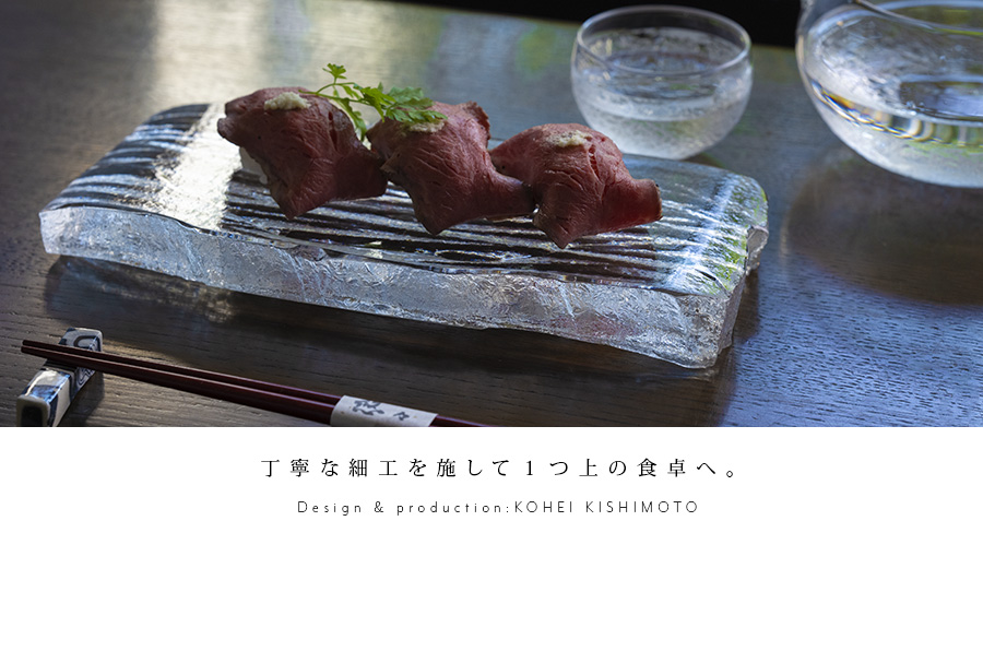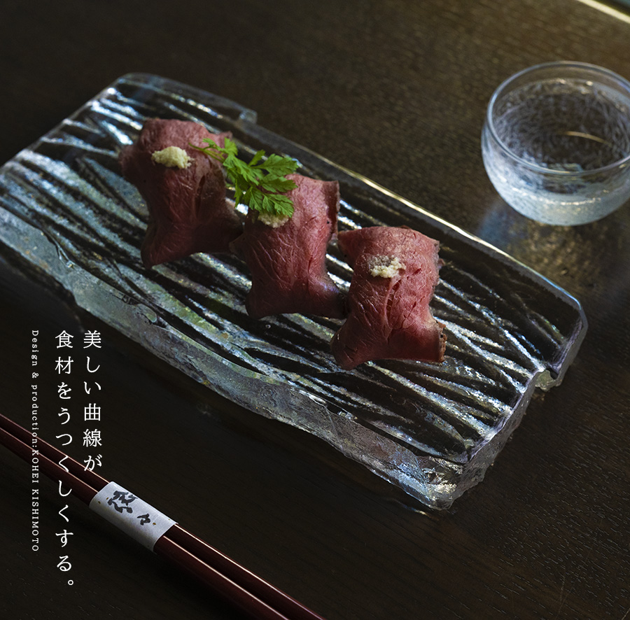 空間に美しい表情を与えるガラス作家:岸本耕平さんのまな板皿。