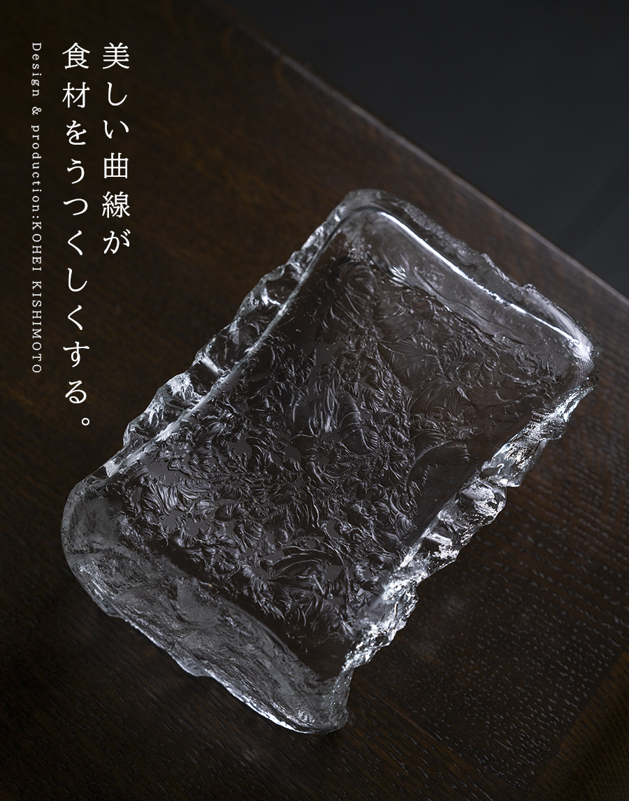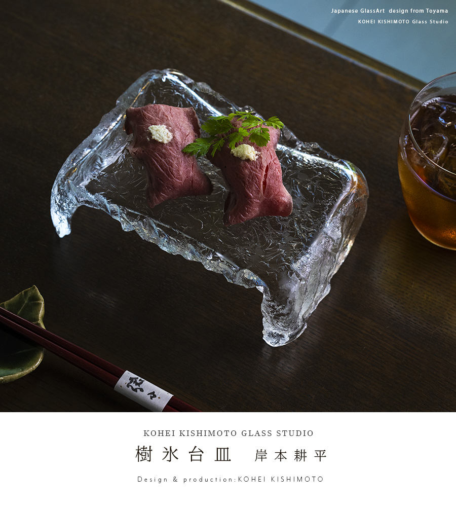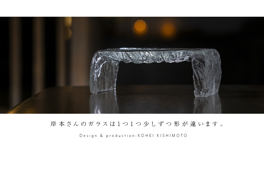空間に美しい表情を与えるガラス作家:岸本耕平さんの樹氷台皿。