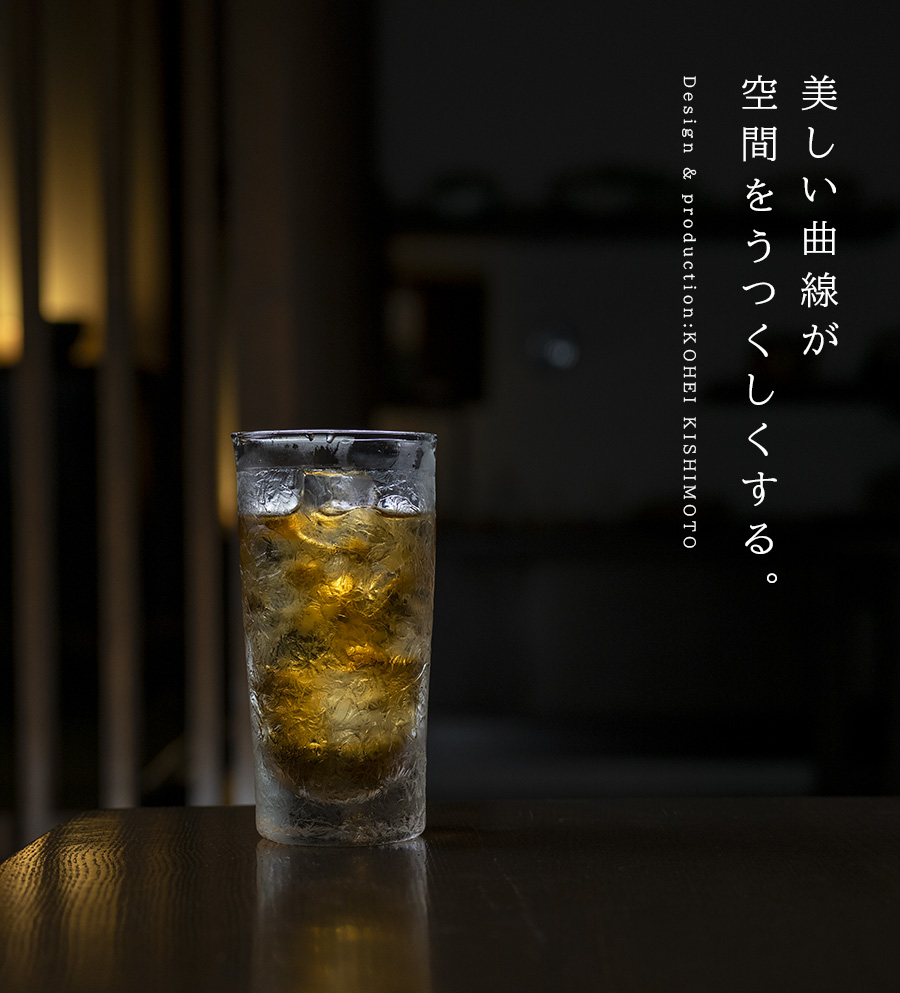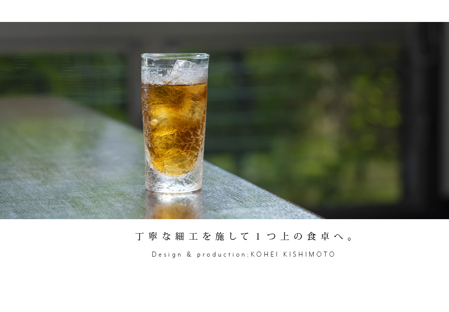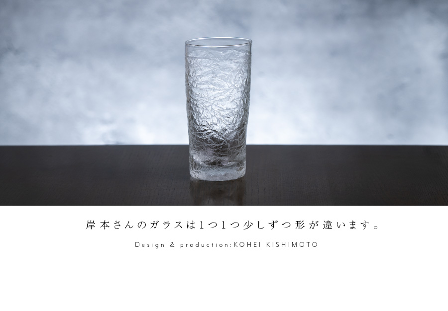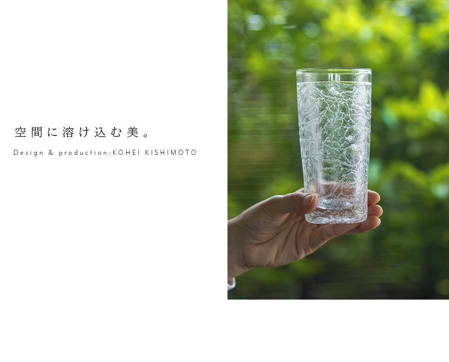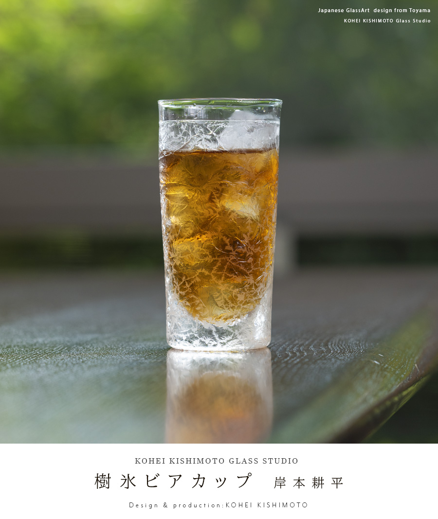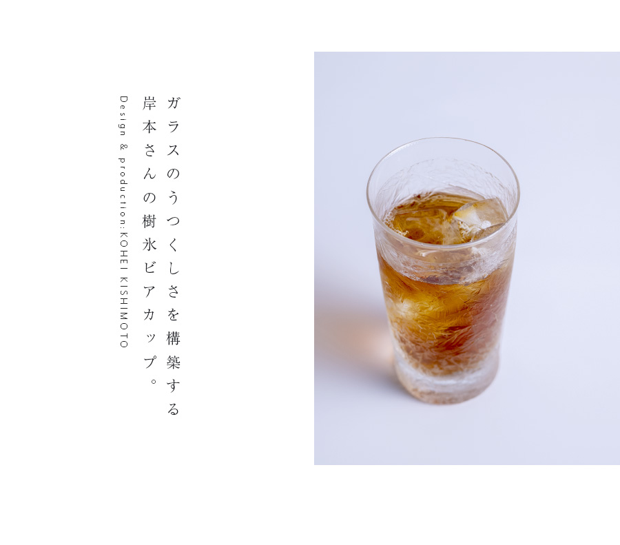 空間に美しい表情を与えるガラス作家:岸本耕平さんの樹氷ビアグラス。