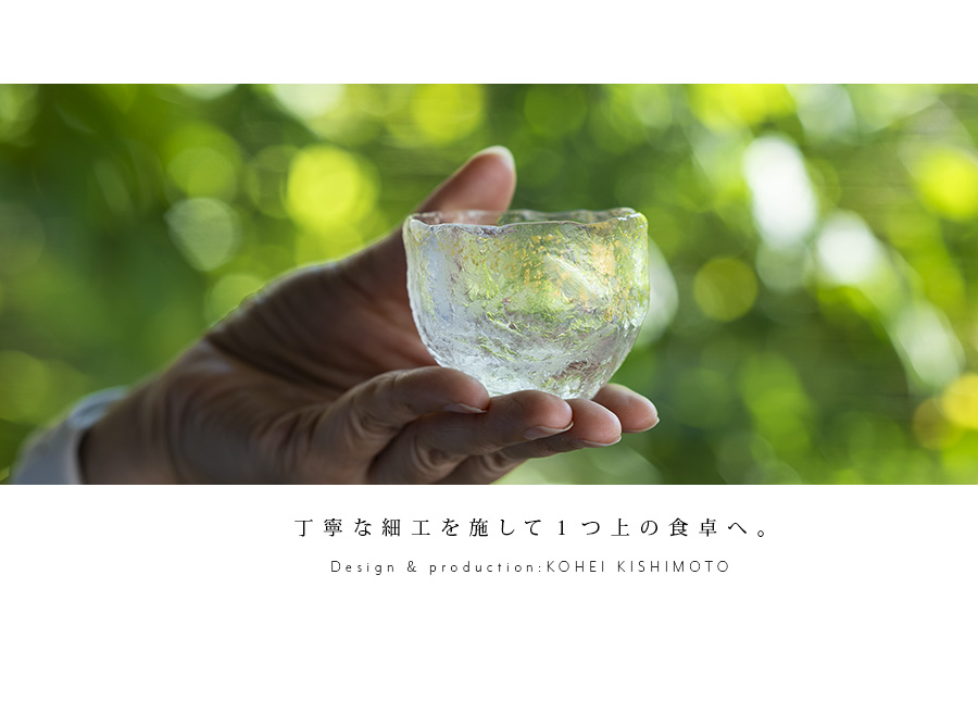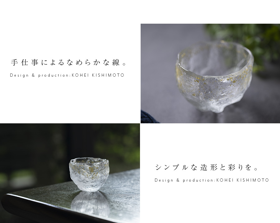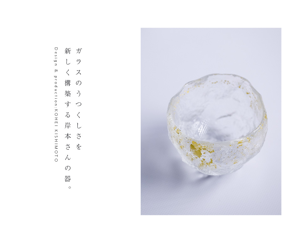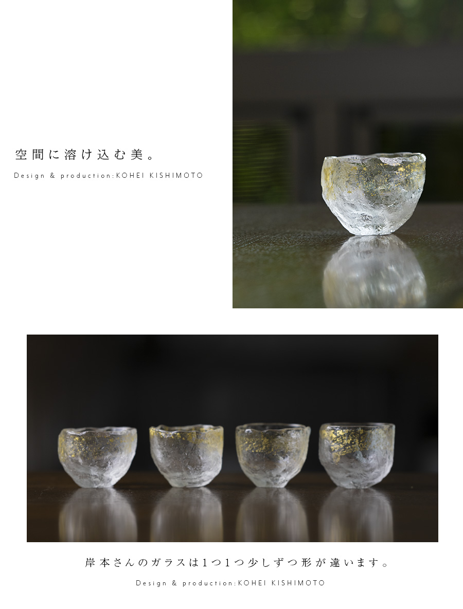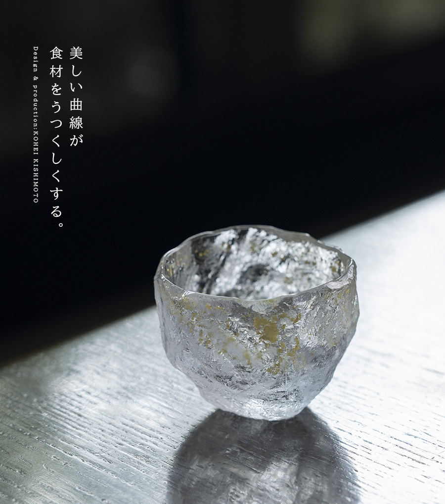 空間に美しい表情を与えるガラス作家:岸本耕平さんのガラスぐい呑。