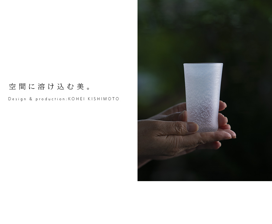 空間に美しい表情を与えるガラス作家:岸本耕平さんのガラスタンブラー。