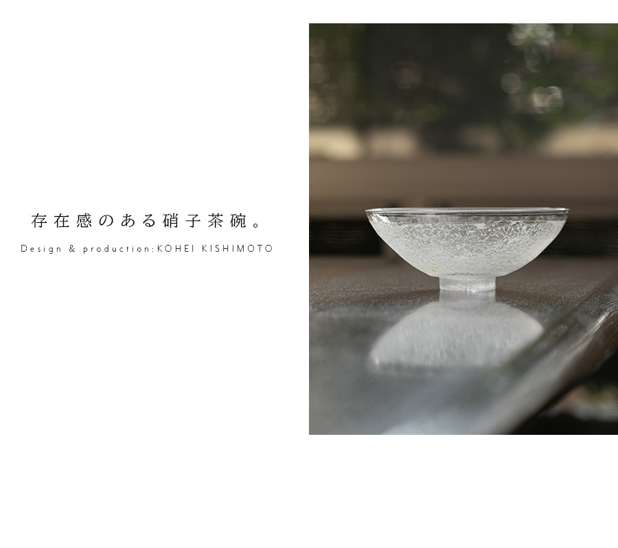 空間に美しい表情を与えるガラス作家:岸本耕平さんの抹茶茶碗。