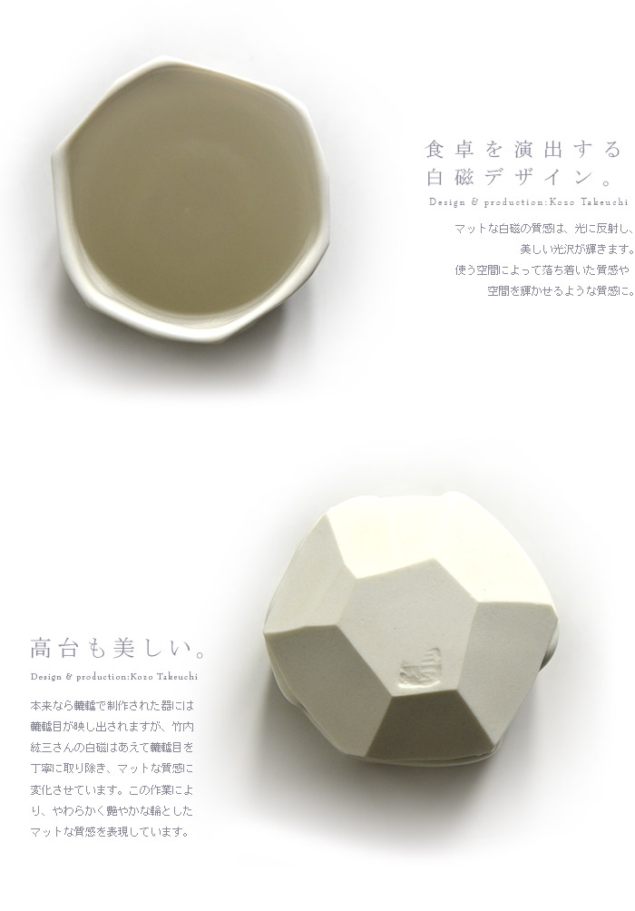 スタイリッシュな作品を制作する竹内紘三さんの白磁デザイン。