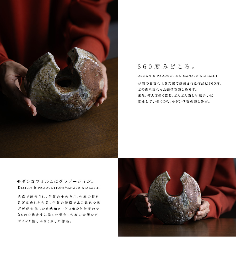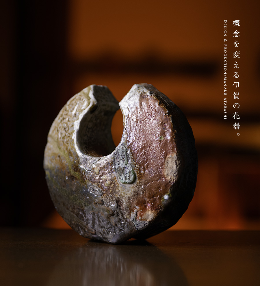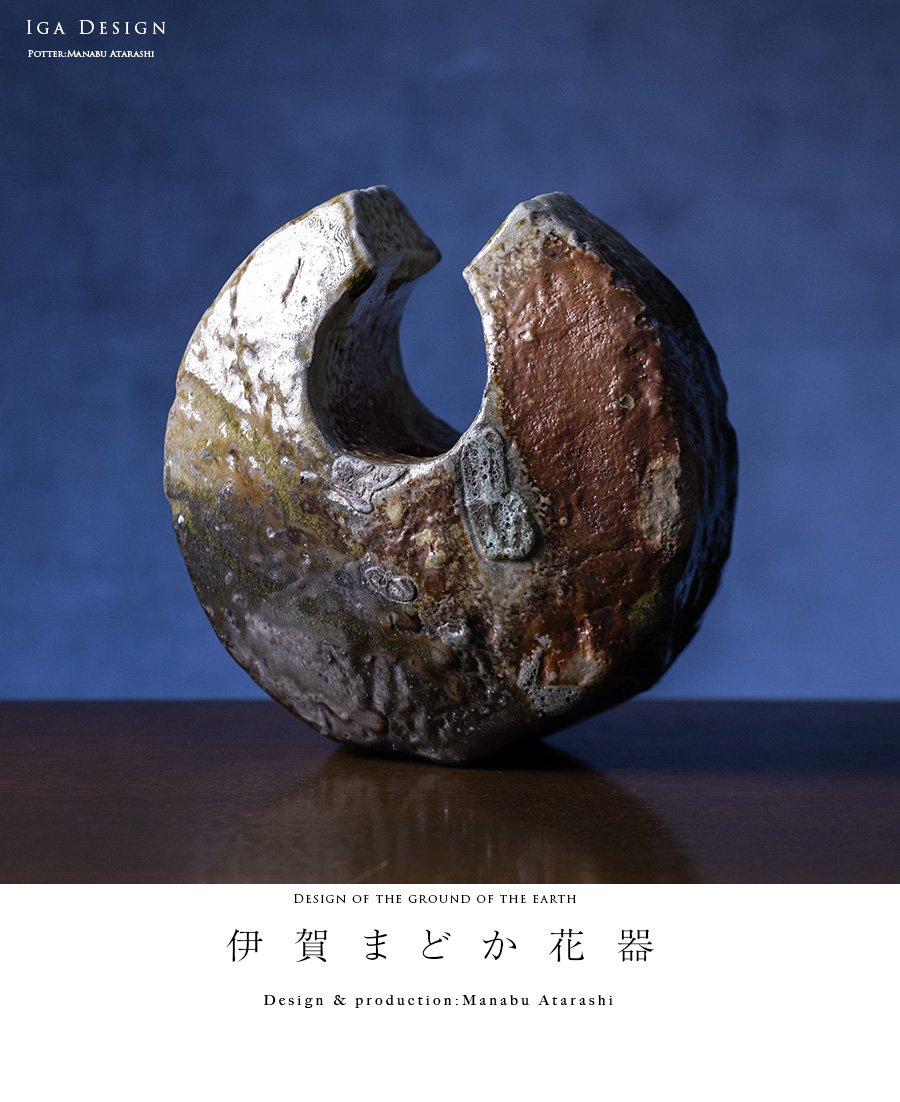 伊賀の窯で焼いた伊賀まどか花器。