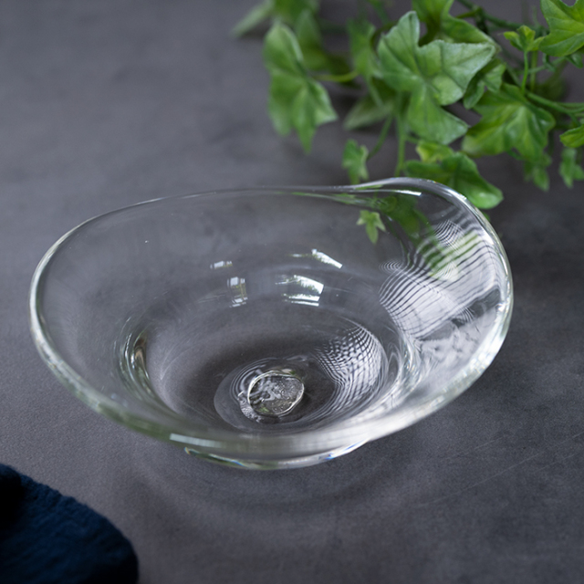 原光弘さんのしずくシリーズは、流れるようなガラスの歪みをとらえたガラス鉢作品。