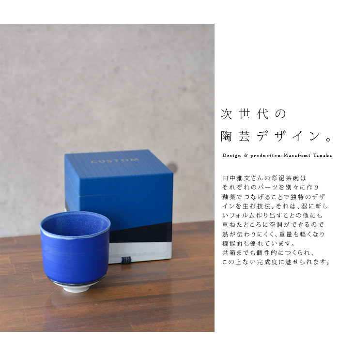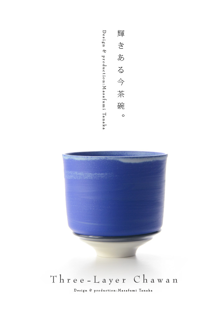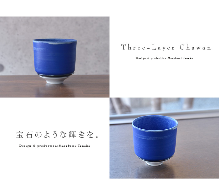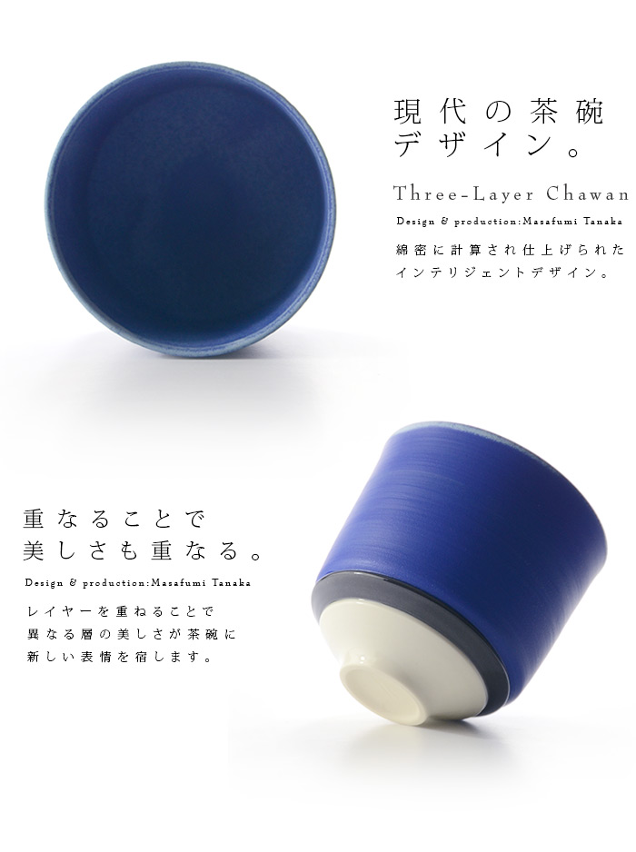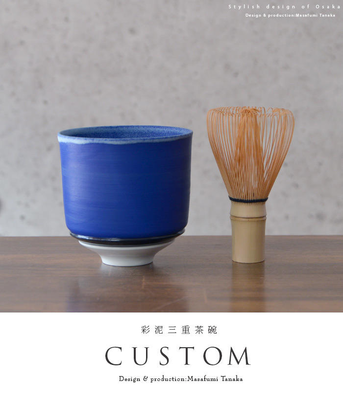 大阪で作陶する田中雅文さんの彩泥三重茶碗「CUSTOM”蒼"」。