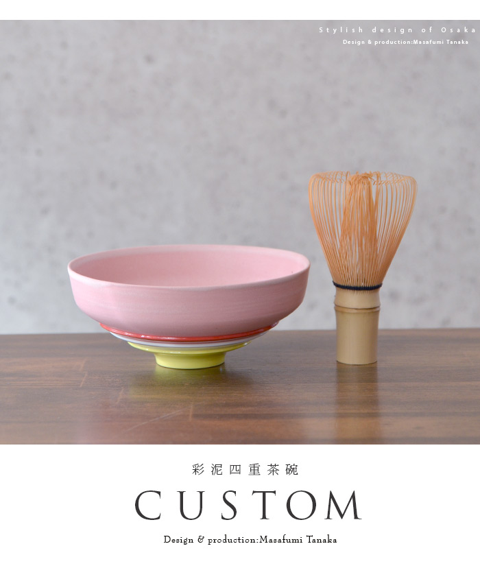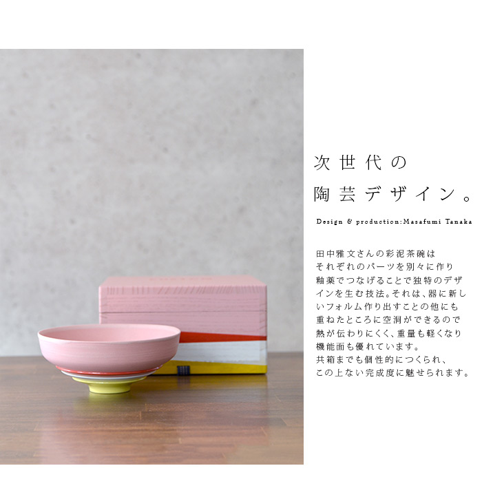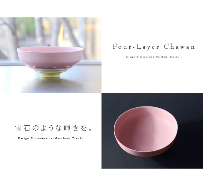 大阪で作陶する田中雅文さんの彩泥四重茶碗「CUSTOM”pink"」。
