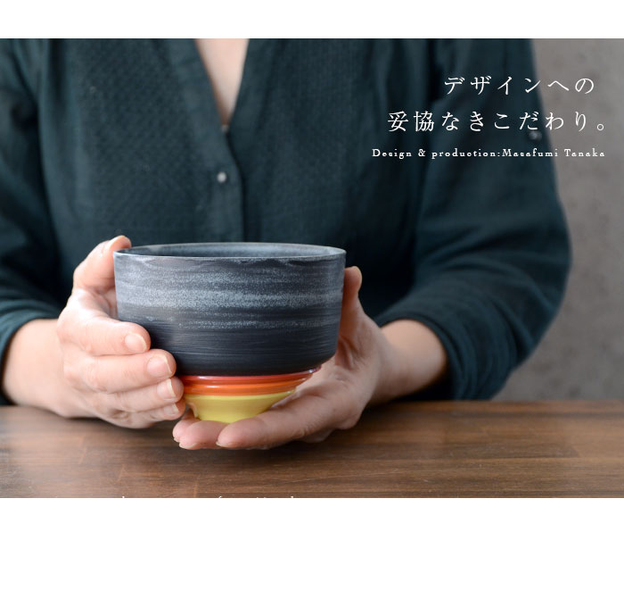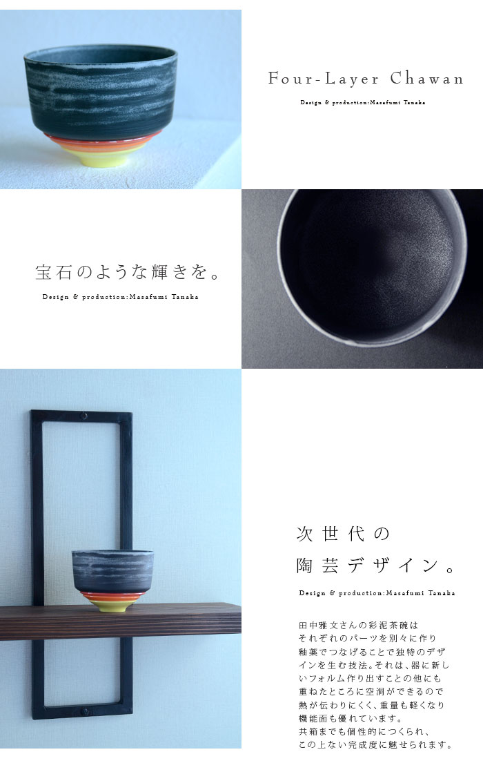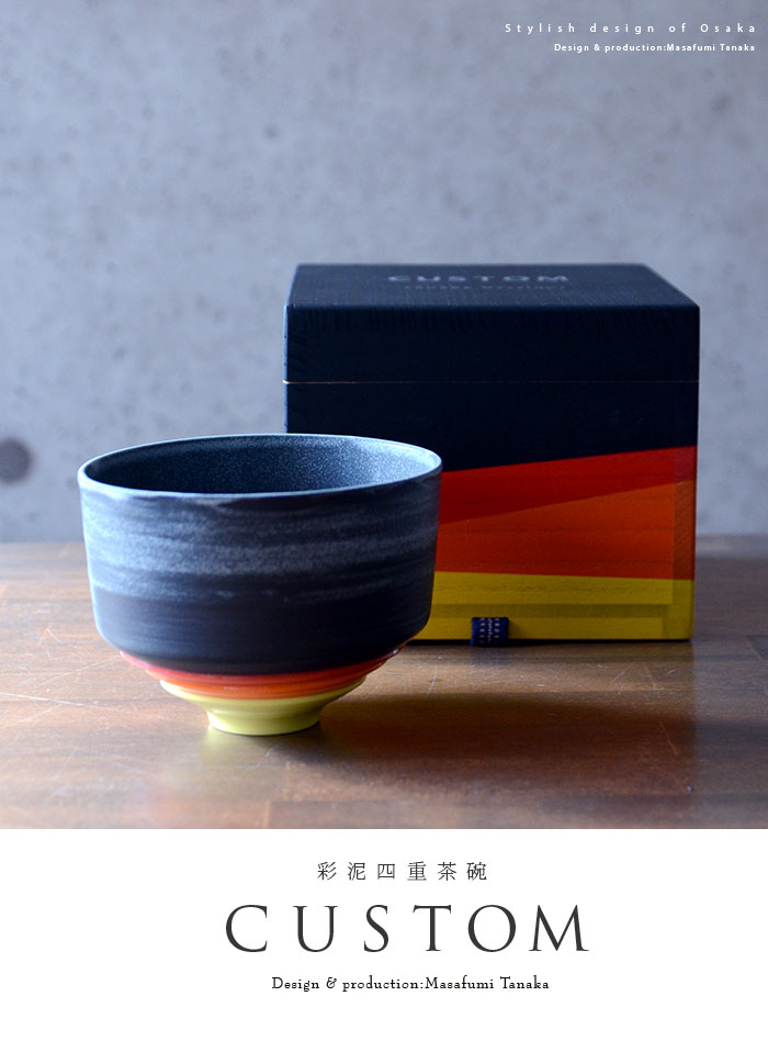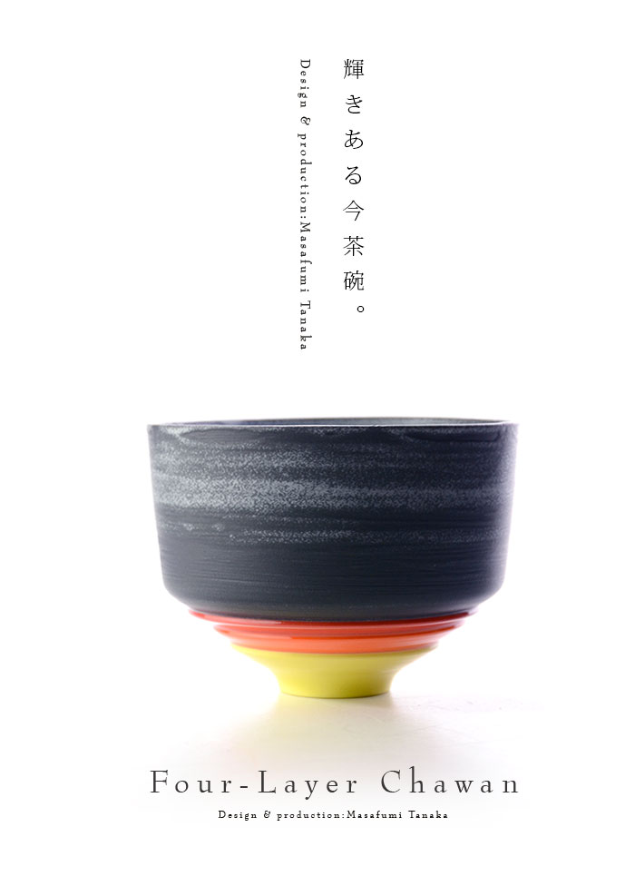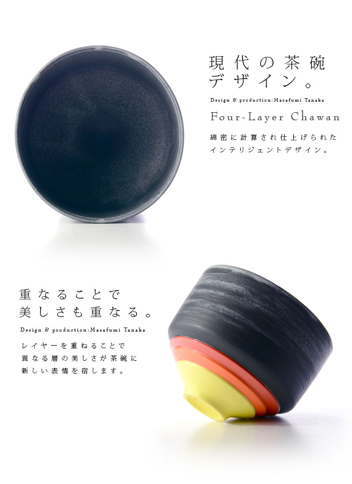 大阪で作陶する田中雅文さんの彩泥四重茶碗「CUSTOM”黒"」。
